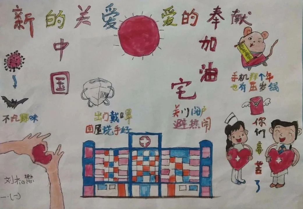 虽然不能像医务人员那样前往一线去救死扶伤,但是作为学生的我,有义务,也有责任为此次抗击疫情尽自己的微薄之力,为此我绘画了一副有关抗击疫情的绘画作品,想呼吁大家,在疫情面前人人有责,同时让人们意识到这次疫情的严重性,这场疫情不仅是国家之战,也是全民之战。一方有难,八方支援。中国人民齐心协力抗击疫情,我相信美好的明天就在不远处向我们招手。”