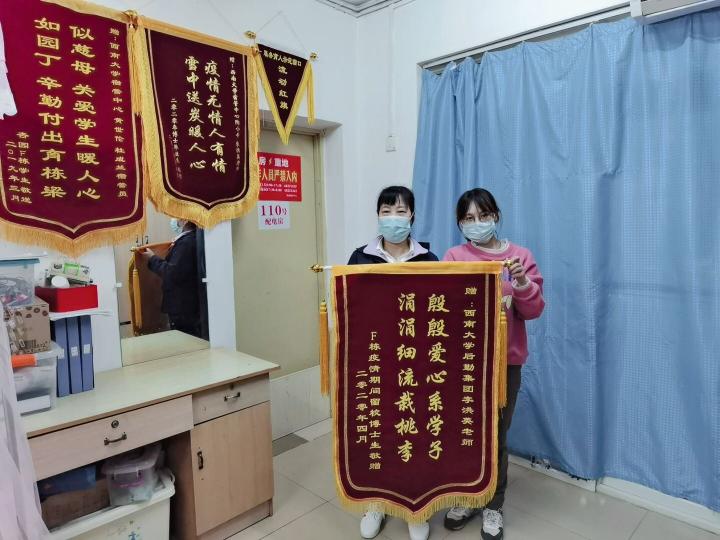 “这段时间真的很感激两位阿姨不辞辛苦地帮我们浇花、开窗通风、晒被子……”董思佳同学在信中代表住在这栋宿舍的全班女生感谢宿管阿姨,称她们是自己的“校园母亲”,值此母亲节来临之际,向“母亲”们表示祝福和感谢。董思佳同学信中说,大家待在家里这么长,都很担心宿舍情况,尤其害怕老鼠在宿舍肆意妄为,把衣物和书籍啃烂。但后来阿姨主动在群里提出可以帮我们检查宿舍,真的让我们悬着的一颗心都放下了。“对于我们的要求,阿姨也是有求必应。”董思佳在信中说。