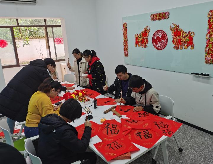 2月9日下午,金年会jinnianhuicom寒假留校的同学们在写福字。 金年会jinnianhuicom 供图