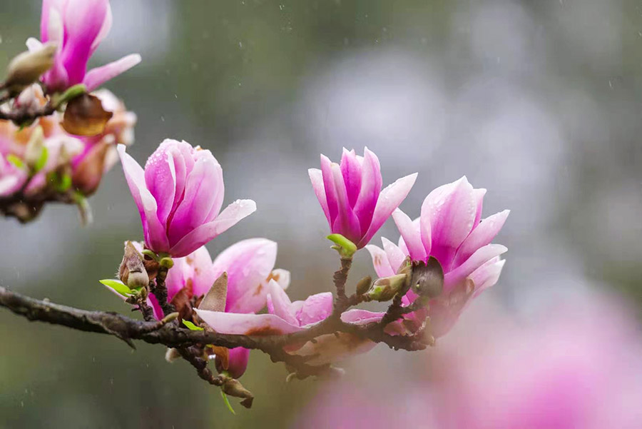 清晨带着露珠的玉兰。 杨燕清摄