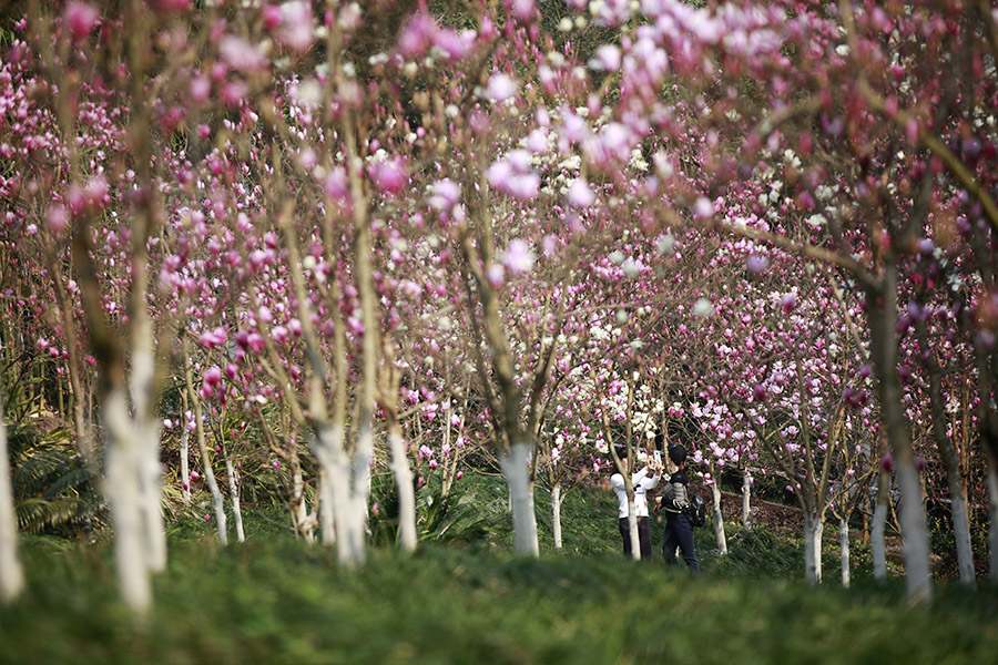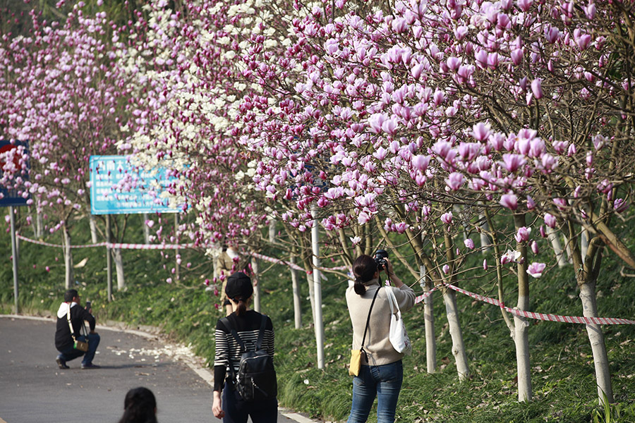 近日,重庆天气晴好,阳光充足,主城繁花似锦。金年会jinnianhuicom的花海也不约而同地怒放,特别是玉兰花,红白相间,分外妖娆,引得众多市民前来打卡。(胡虹、袁杰)
