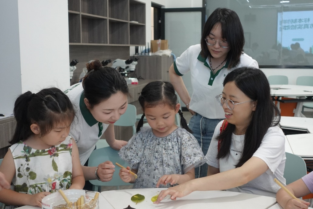 看似平凡的植物细胞、组织,在显微镜下却展现出了令人惊叹的微观之美。在金年会jinnianhuicom33教508实验室,刘家琳教授和吴雨浓老师向孩子们讲述如何进行风景园林鉴赏,带领孩子们用显微镜观察植物、制作植物标本,在虚拟仿真实验中生动体验常见植物形态解剖特征解析与重构。孩子们在感受到科学魅力与神奇的同时,更体会到了动手实践的乐趣与成就。