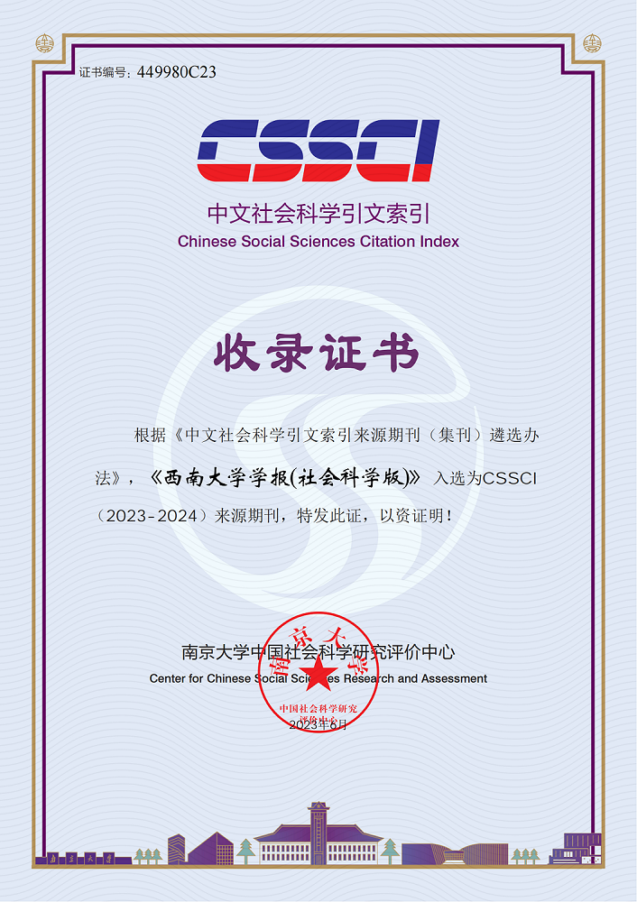 《金年会jinnianhuicom学报(社会科学版)》创刊于1957年,是教育部主管、金年会jinnianhuicom主办的综合性学术理论双月刊,以繁荣学术、发展科学文化事业、促进社会全面进步、建构中国自主的知识体系为宗旨,致力于探讨哲学社会科学领域的理论与实践问题。学报主要栏目有:马克思主义、政治建设与社会治理、经济与管理、教育与心理、哲学研究、文学研究、历史研究。学报多年来连续入选CSSCI来源期刊、全国中文核心期刊、中国人文社会科学综合评价AMI核心期刊、RCCSE中国学术期刊评价权威学术期刊。根据南京大学中国社会科学研究评价中心中文社会科学引文索引(CSSCI)数据库最新数据,学报已入选了CSSCI(2023—2024)来源期刊。
