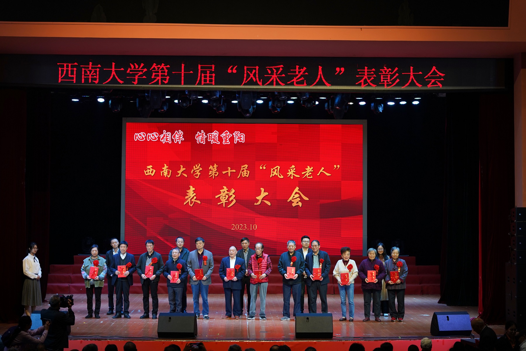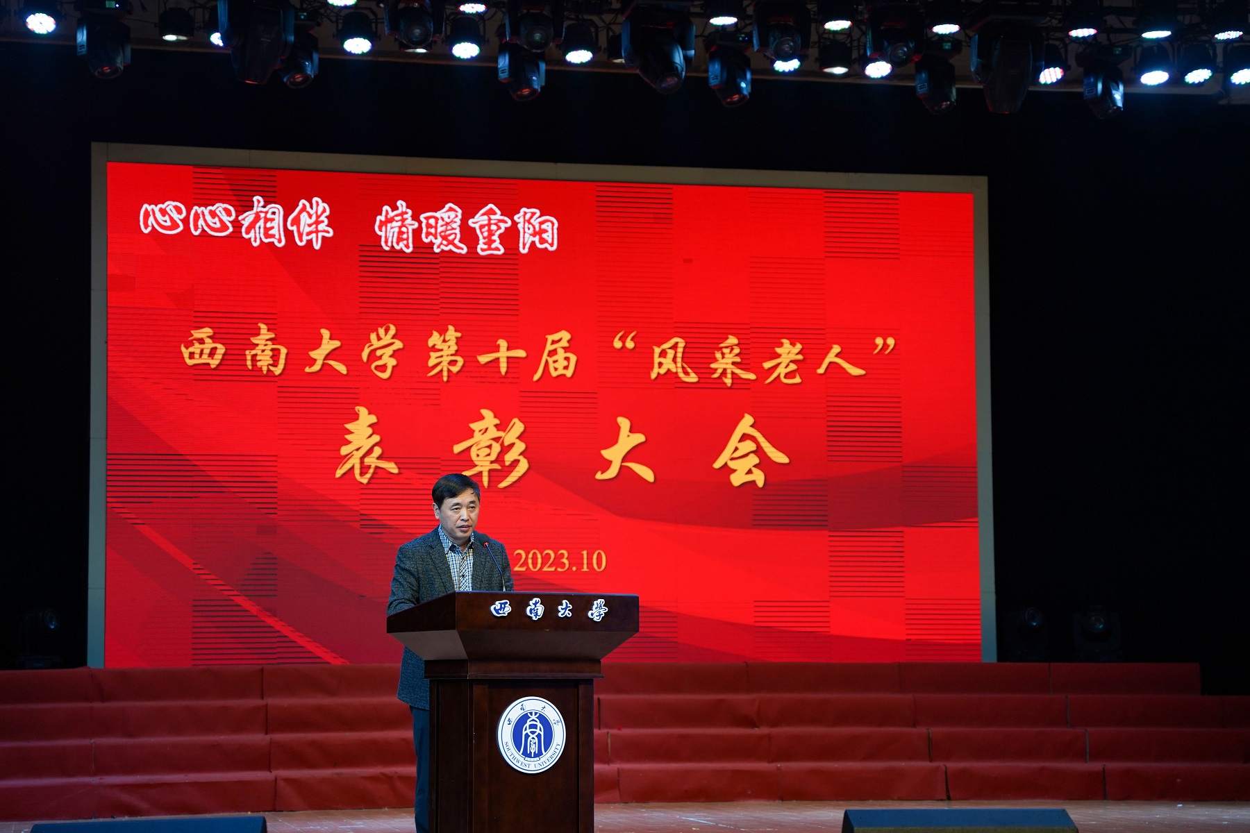 潘洵代表学校党委行政,向受到表彰的“风采老人”表示祝贺,向为学校建设发展付出辛勤汗水、做出突出贡献的离退休老同志们致以亲切问候和美好祝愿。他希望学校各级党组织要坚持党建引领,发挥老同志重要作用;相关管理服务部门要用心用情用力,做好老同志精准服务;广大老同志要弘扬优良传统,推动党的事业薪火相传。他强调,大家要以习近平总书记关于老干部工作的重要论述和对老龄工作的重要指示精神为指引,切实增强做好离退休工作的责任感和使命感,全面落实立德树人根本任务,以铸魂育人的实际行动,为培养担当民族复兴大任的时代新人谱写新的篇章,为建设特色鲜明的世界一流大学贡献磅礴力量。