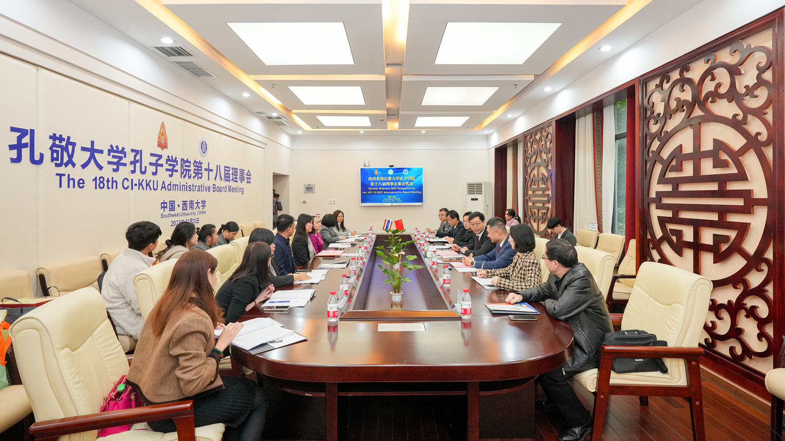 11月21日,学校合作共建的泰国孔敬大学孔子学院第18届理事会会议在校召开。副校长赵国华出席并致辞,泰国孔敬大学校长助理阿查拉婉·托帕娜姆,两校相关单位负责人,以及孔子学院中泰双方院长参加会议。这是近三年来两校首次线下举行孔子学院理事会。
