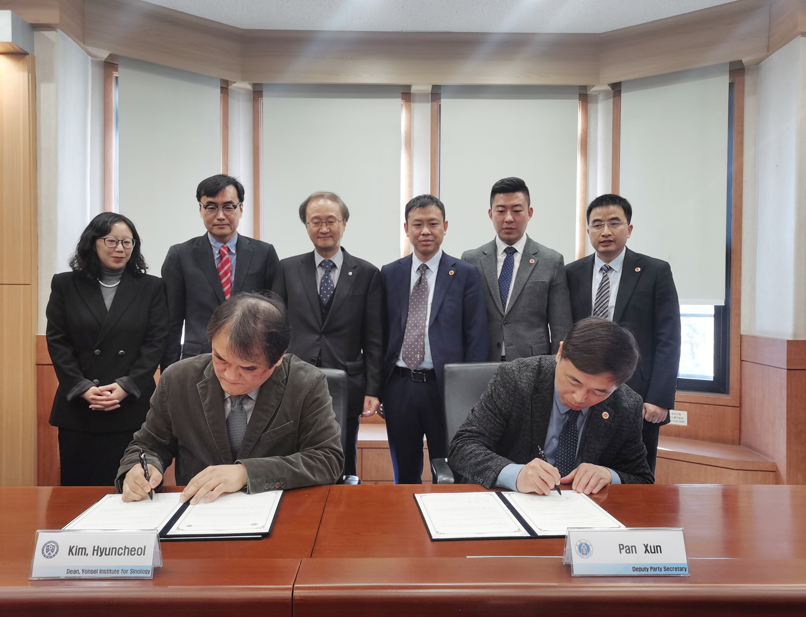 图6 与韩国延世大学中国研究院院长金铉哲签署合作协议