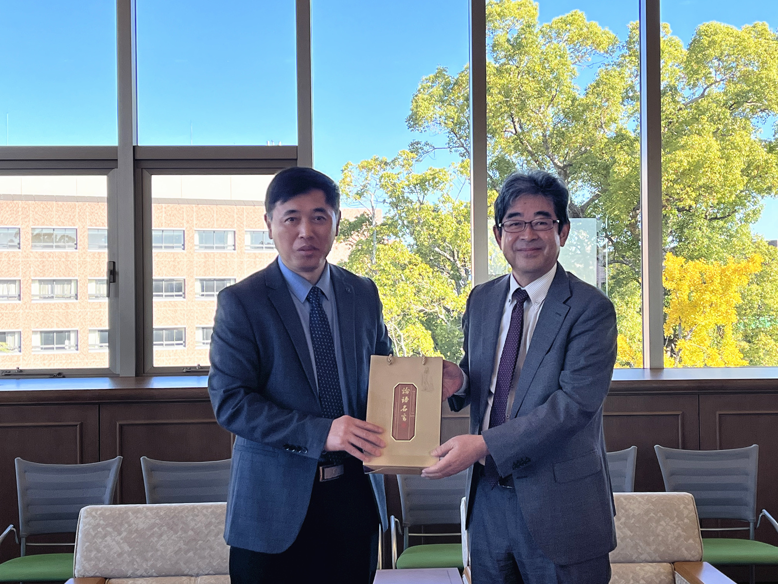 潘洵一行来到日本福山市立大学,与该校理事长、校长佐藤利行,理事、副校长向井厚志,事务局长渡部廉弘等进行会谈,并举行校级合作备忘录签约仪式。佐藤校长对学校代表团到访表示热烈欢迎,回顾了与学校在30年前结缘的经历。