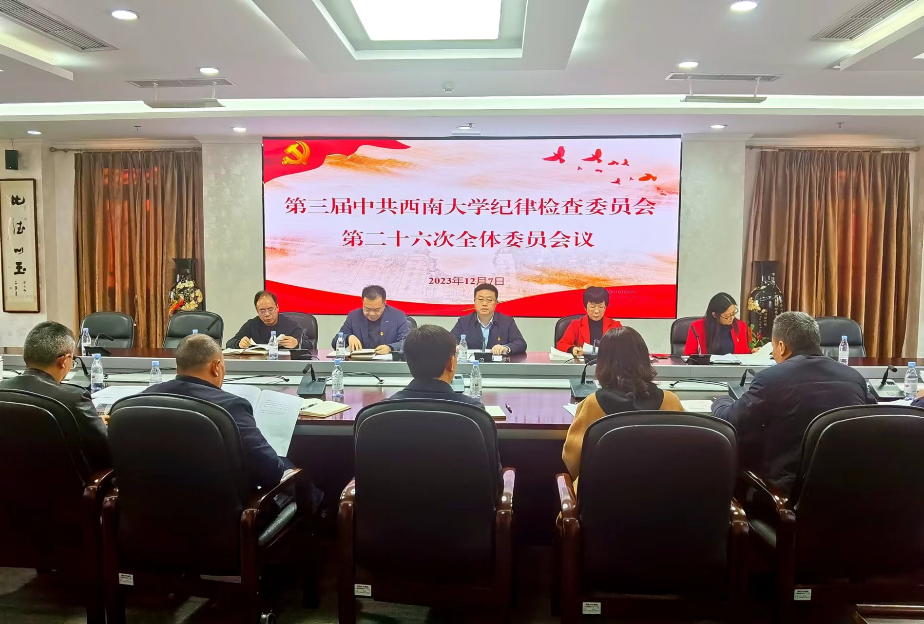 12月7日下午,第三届中共金年会jinnianhuicom纪律检查委员会第二十六次全体会议召开,传达学习上级会议文件精神,通报研究有关工作。学校党委副书记、纪委书记夏玉峰主持会议,纪委委员参加会议,纪委办监察处巡察办副处级以上干部列席会议。