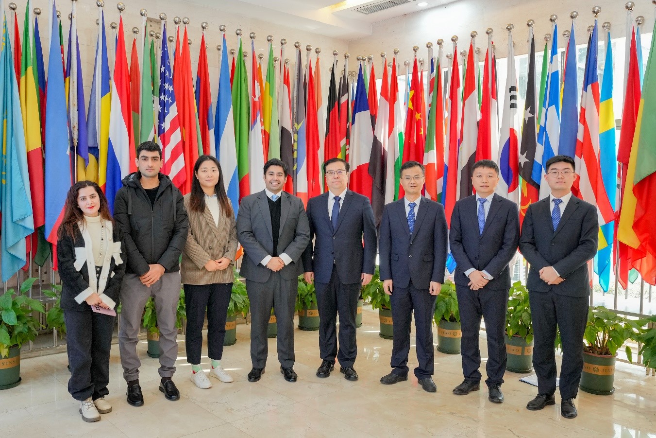 王进军热烈欢迎胡楠一行到访,介绍了学校的基本情况以及与巴基斯坦的合作现状。他介绍到,学校目前有在籍巴基斯坦学生共76人,包含博士、硕士、本科等各个学历层次,另有22名巴基斯坦博士后在校工作,他们都是中巴友谊的使者。期待未来与更多高水平巴基斯坦大学合作,在师生互访、联合培养和科学研究等方面开展合作,促进中巴人文交流和民心相通。