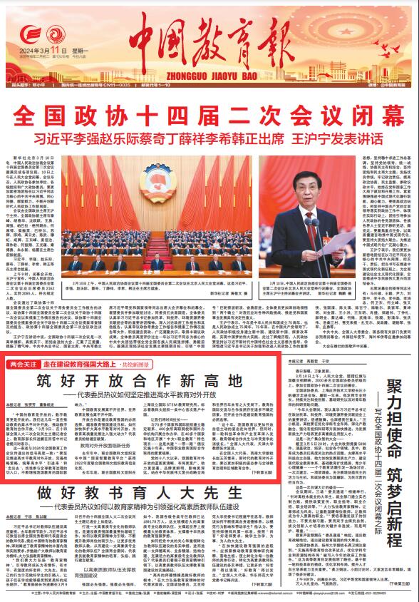 扩展阅读:《人民日报》2024年3月11日第6版、《人民日报》2024年3月11日第8版、《中国教育报》2024年3月9日第3版、《中国教育报》2024年3月11日第1版、《中国科学报》2024年3月5日第4版、《重庆日报》2024年3月9日第4版