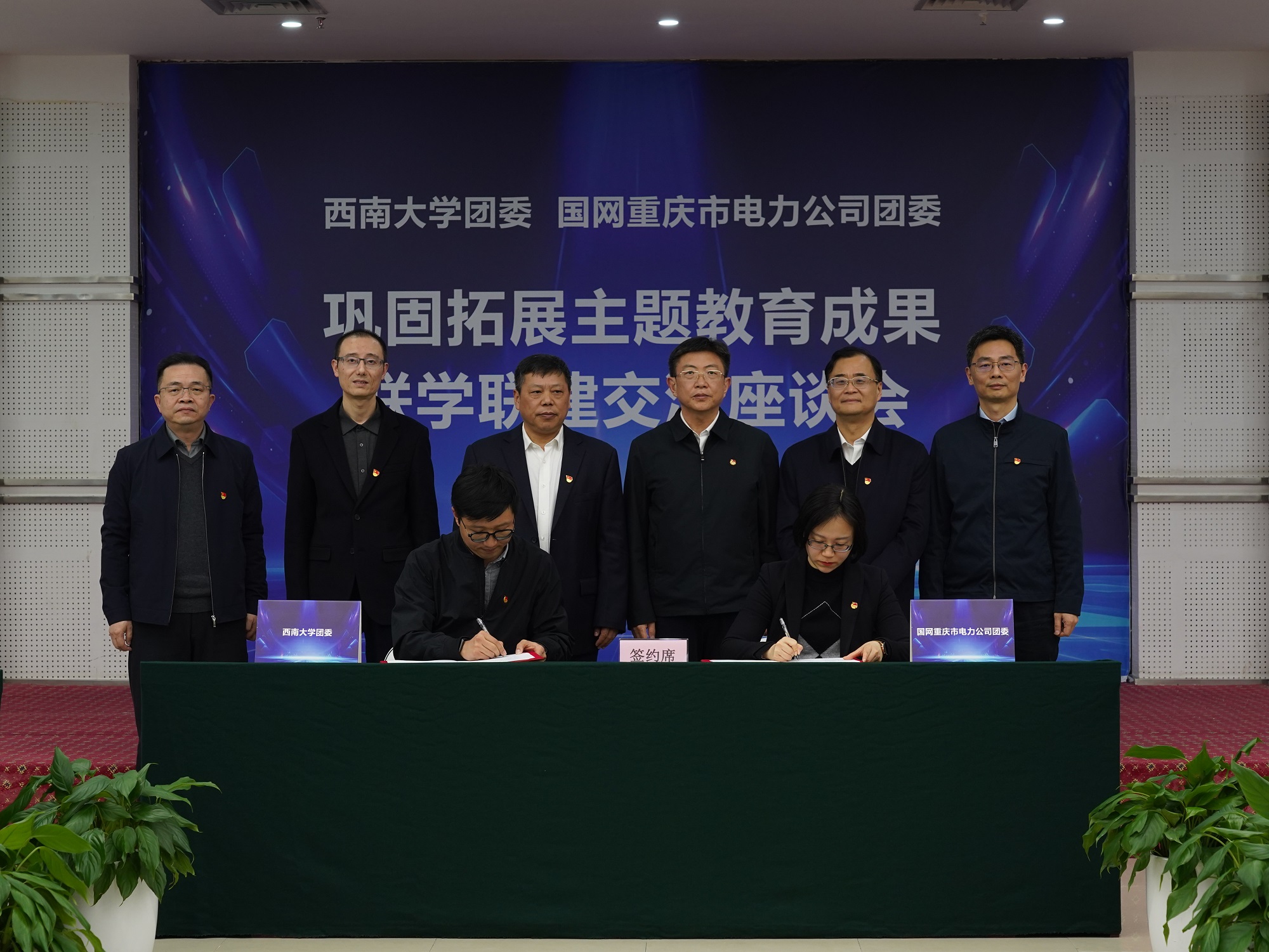 会上,张卫国和胡江溢共同为“扬帆计划”实践基地揭牌,校团委与国家电网重庆市电力公司团委签署了合作备忘录。双方围绕打造校企合作典范、合作项目成果转化、青年作用发挥等方面进行了深入探讨,碰撞思想火花,凝聚发展共识。