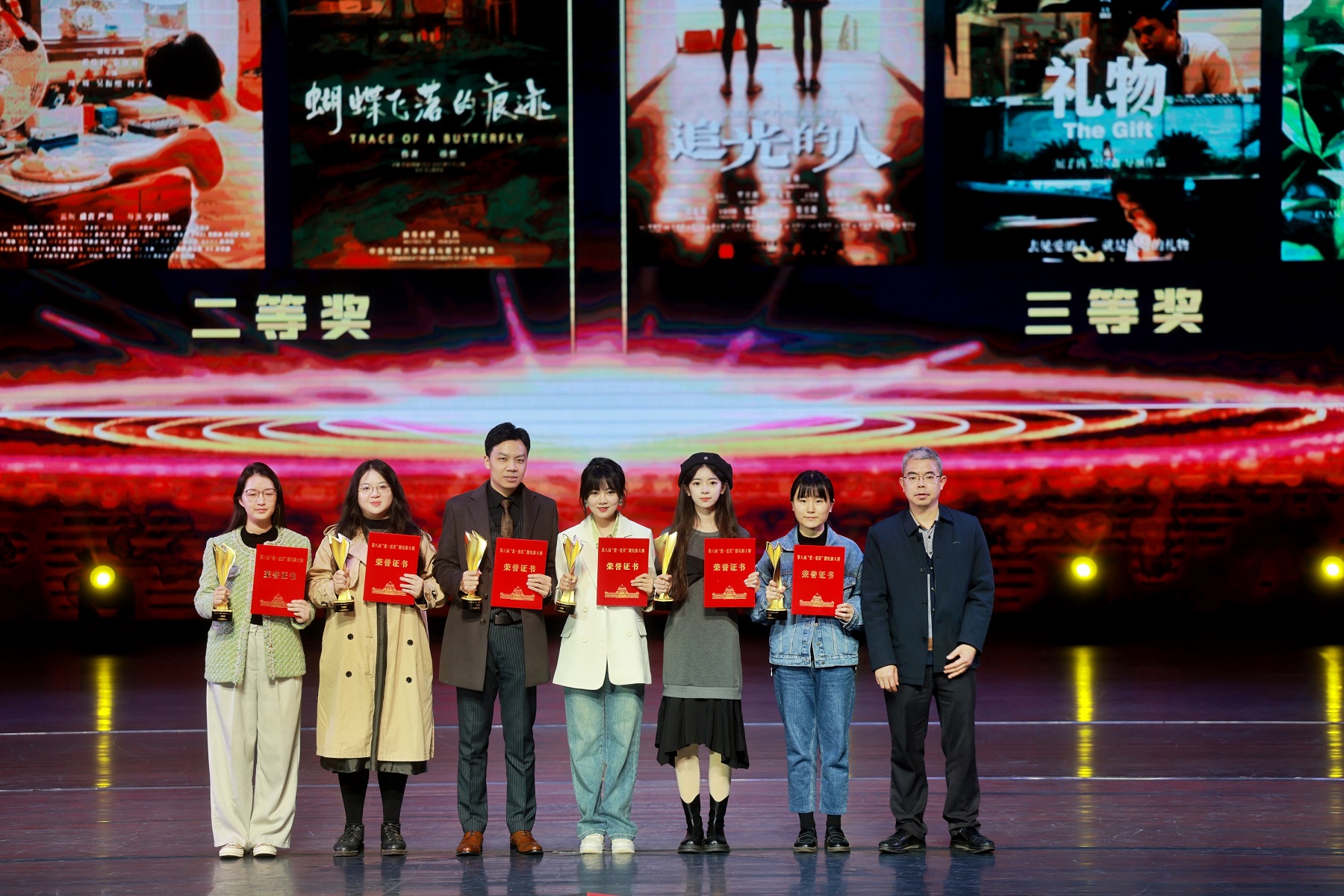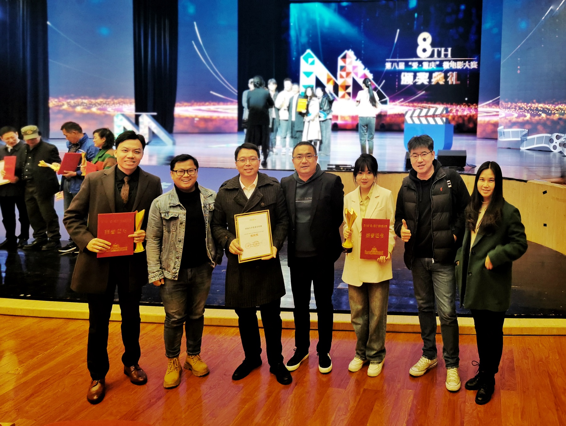 近日,备受瞩目的第八届“爱·重庆”微电影大赛颁奖典礼在重庆市群众艺术馆群星剧院举行。学校师生作品在大赛中斩获一、二、三等奖各一项,优秀剧本奖四项,学校党委宣传部获优秀组织奖。