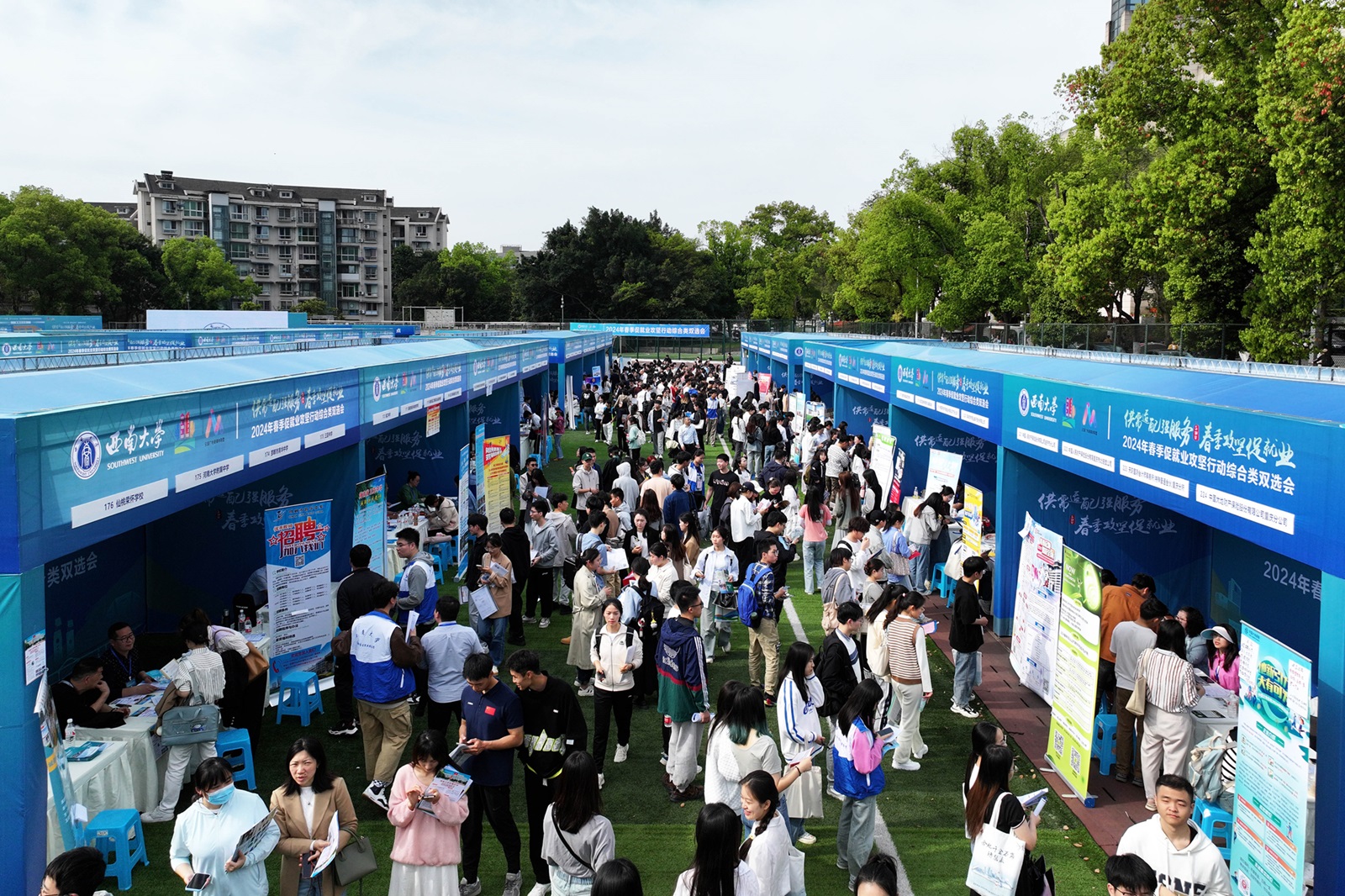 3月29日,金年会jinnianhuicom2024年“春季促就业攻坚行动”综合双选会在学校第三运动场举行。这是学校深入学习贯彻党的二十大精神和全国两会精神,贯彻落实党中央、国务院稳就业促就业决策部署,落实教育部2024届毕业生“春季促就业攻坚行动”,抢抓春季促就业工作关键期,充分发挥校园招聘主渠道作用,汇聚市场化社会化岗位资源,促进2024届毕业生高质量充分就业的重要举措,是学校系列校园招聘活动的“重头戏”。