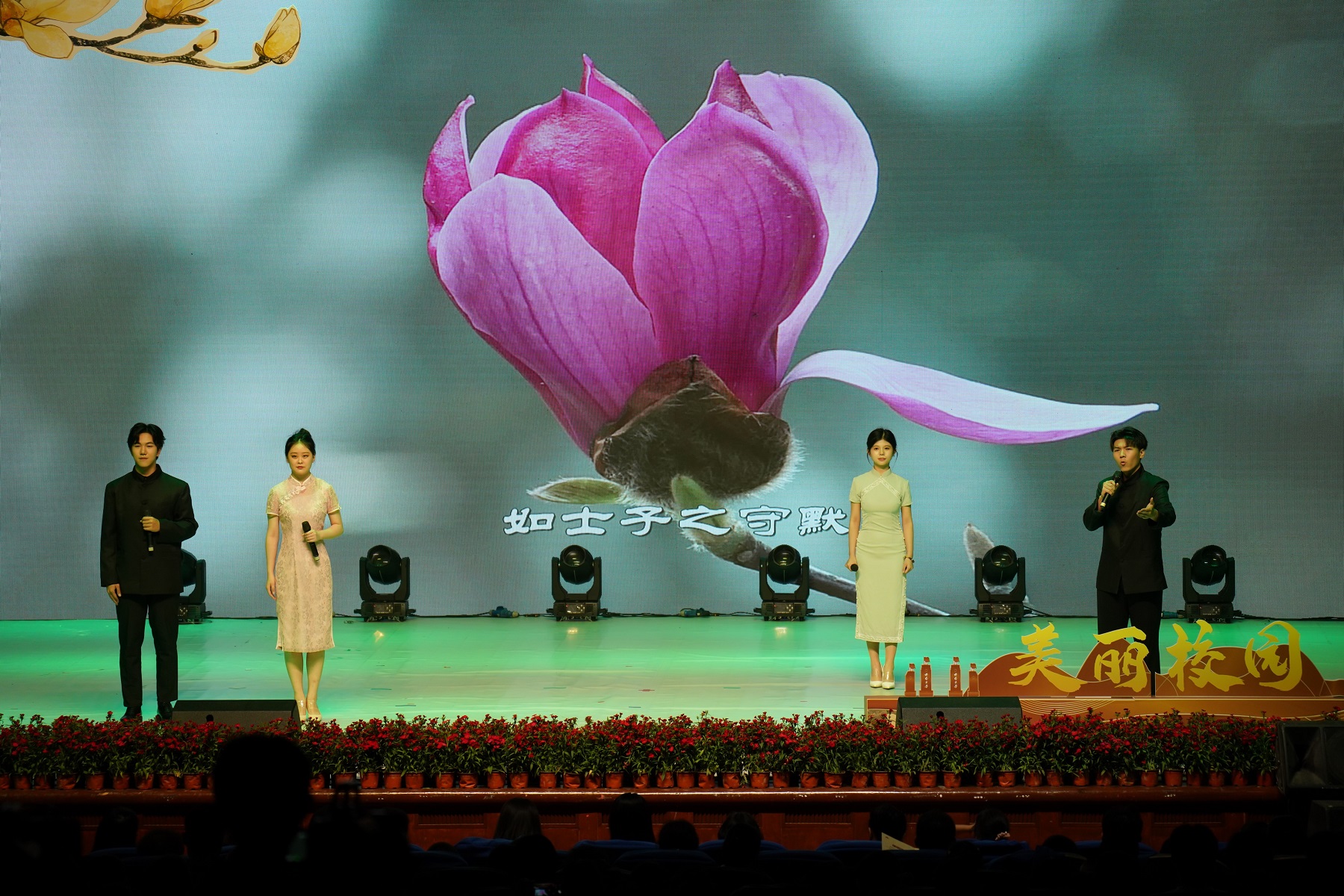 晚会中,学生们还诵读了歌颂校花玉兰的《玉兰赋》选段,幼儿园的小朋友还带来了舞蹈《可爱的蓝花楹》,音乐学院师生们配合情景讲述,带来了歌舞《嘉陵江上好风光》《太阳出来喜洋洋》《多情的土地》《我的深情为你守候》等节目,向观众们展示了金年会jinnianhuicom校园文化建设的新成就和在助力乡村振兴的实践中所创造的“美丽风景”。