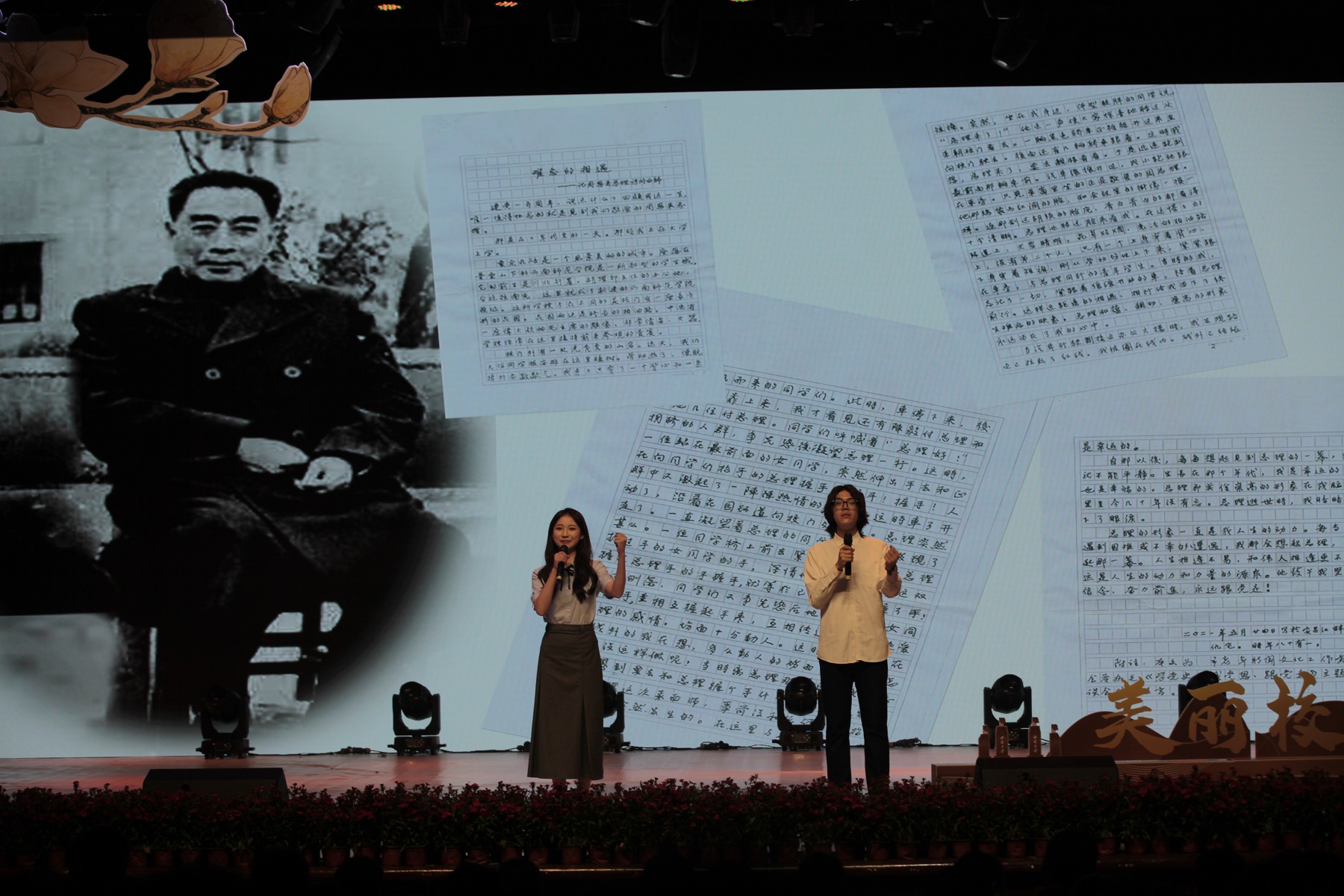晚会现场,大屏幕上展示了一封手写书信。这是不久前金年会jinnianhuicom1957级老校友寄来的。信里说,1958年的阳春三月,他和同学们正在大校门种树,不经意间,看到了周恩来总理。伴随着讲解员深情地讲述,一幕动人的往事展示在眼前,不少观众眼角闪动着泪光。