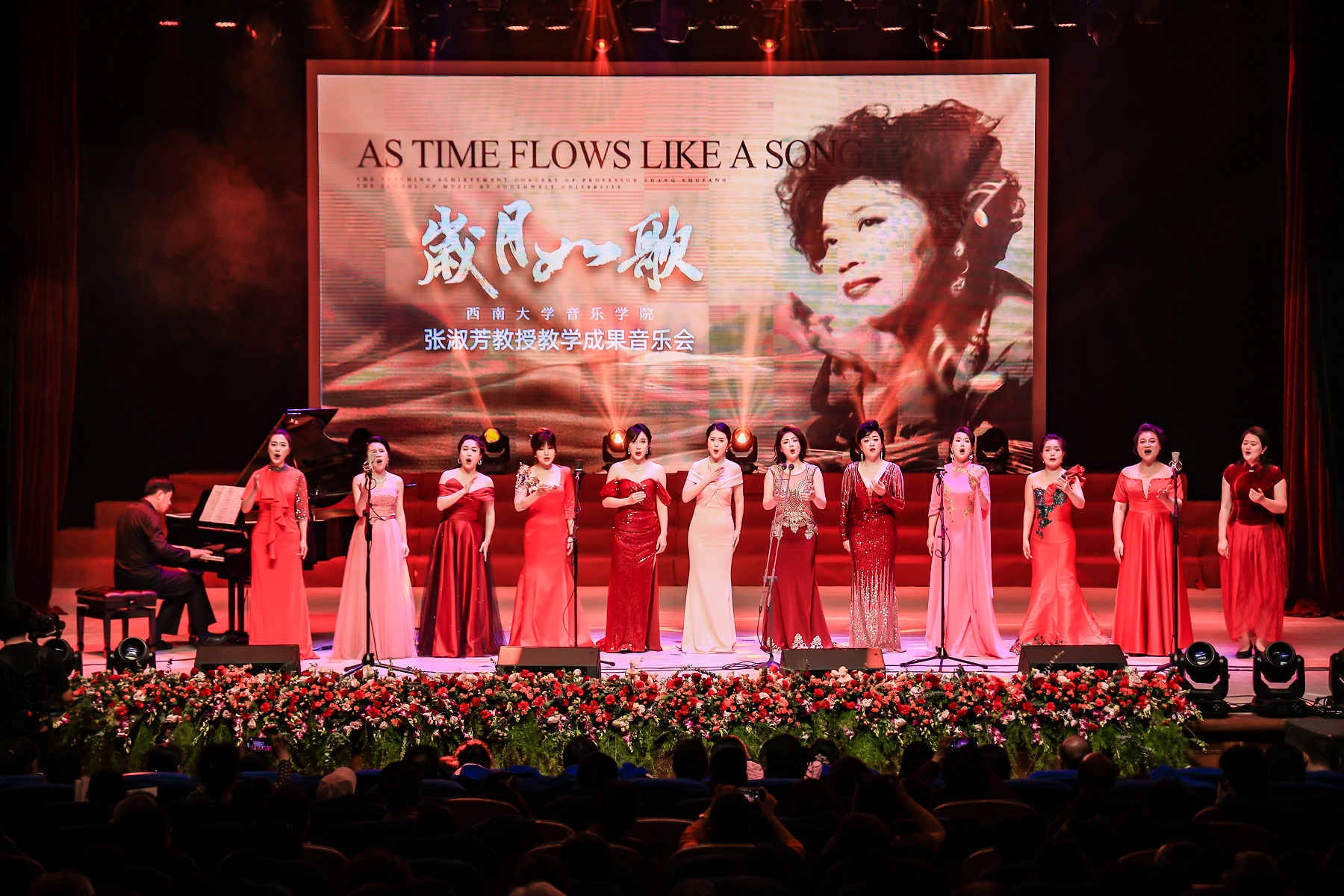 4月26日晚,音乐学院张淑芳教授从教五十周年教学成果音乐会在光大礼堂举行。音乐会以“岁月如歌”为主题,邀请了李丹阳、张卓等知名歌唱家及41位优秀校友登台演出。学校党委书记张卫国、党委副书记潘洵出席活动。音乐学院负责人、师生代表、校友代表,学校相关职能部门负责人及社会各界人士代表等数百余人到场聆听。