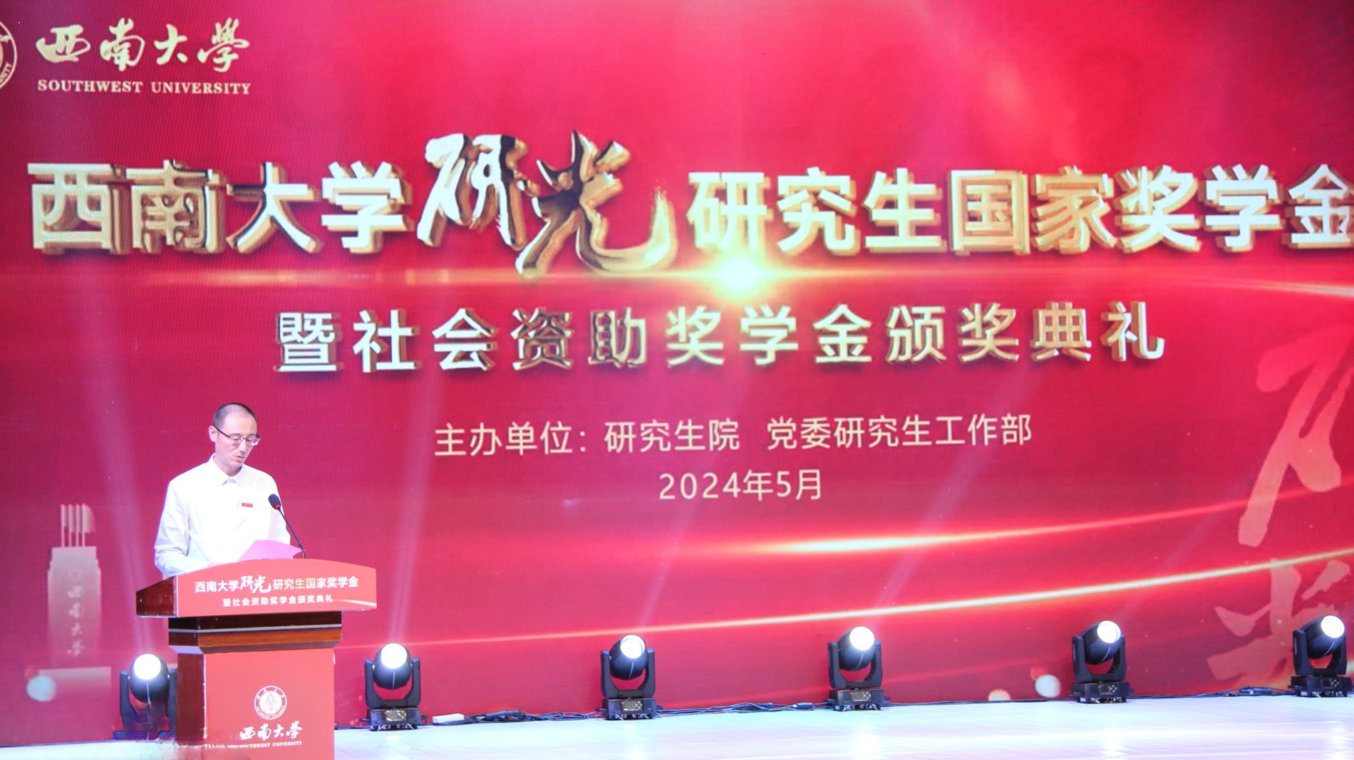 在典礼上,黄杰宣读了研究生国家奖学金表彰决定。学校共有35名博士研究生、174名硕士研究生获2023年度研究生国家奖学金。
