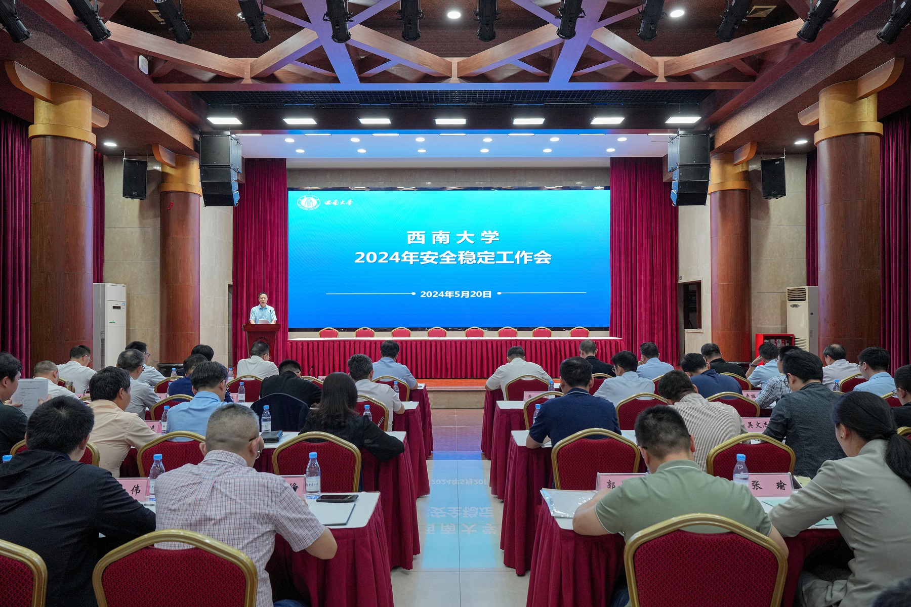 5月20日下午,学校2024年安全稳定工作会在东方红会议厅召开。党委书记张卫国、校长王进军、党委副书记黄杰、副校长韩旭东出席会议。会议由韩旭东主持。