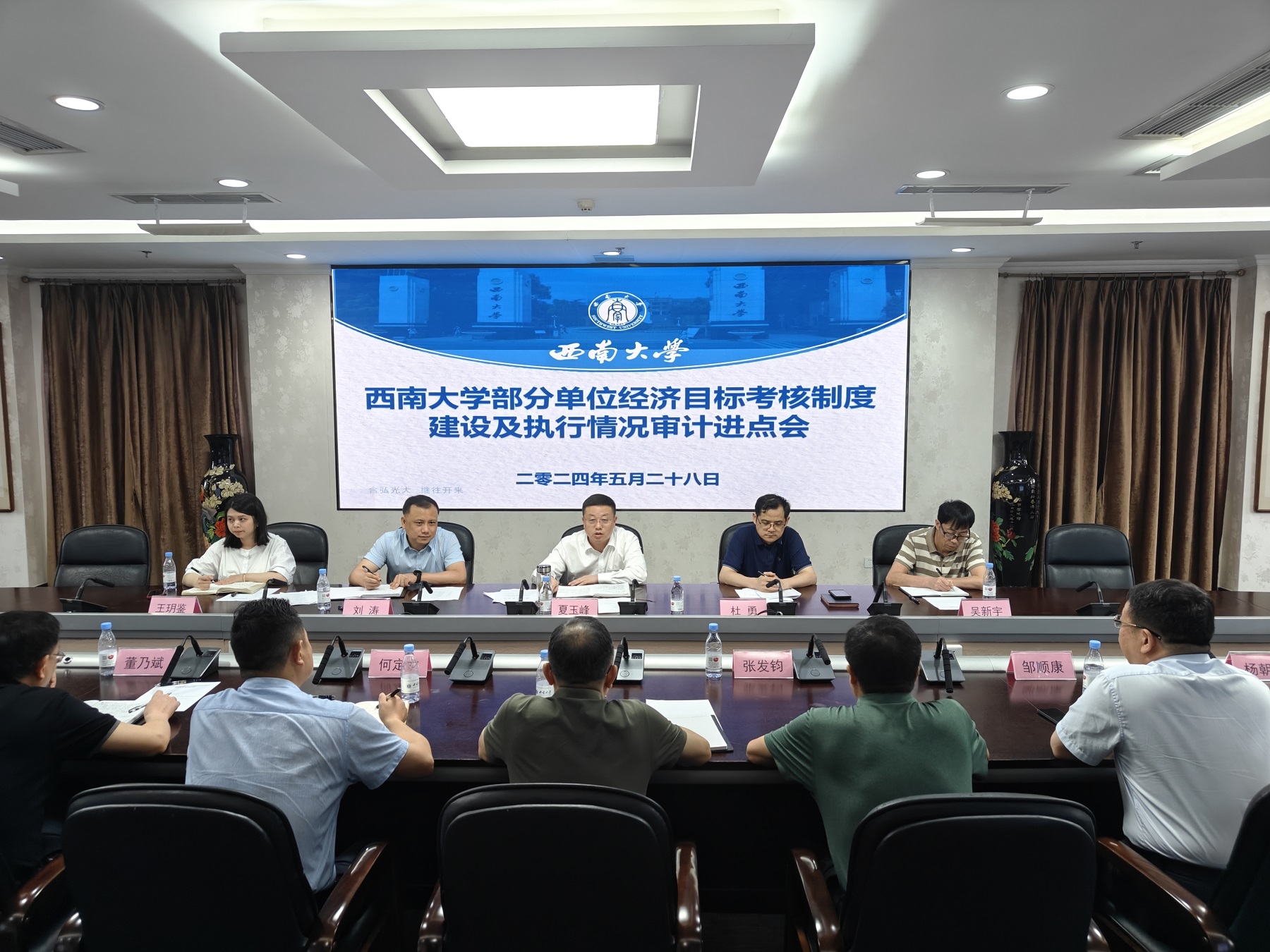 5月28日,学校召开部分单位经济目标考核制度建设及执行情况审计进点会,动员部署相关工作。会议由学校党委副书记、纪委书记夏玉峰主持。相关单位主要负责人及审计工作组人员参加会议。