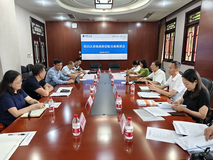 5月27日下午,荣昌区委常委、统战部部长覃兴建一行来校座谈交流统战工作,学校党委副书记潘洵出席座谈会。荣昌区委统战部、学校党委统战部和荣昌校区党工委负责同志及相关工作人员参加座谈交流。