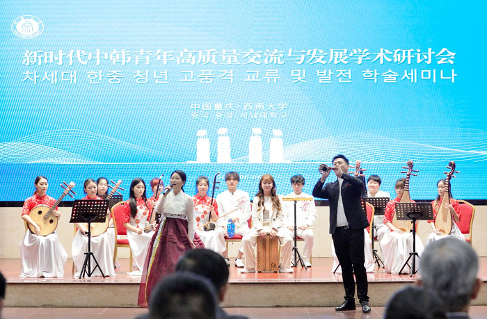 开幕式上,学校音乐学院青年教师、中韩青年发展研究中心教师携手金年会jinnianhuicom民乐团以歌曲演唱和民乐合奏等形式展现了中韩文化的和谐交融以及青年的蓬勃朝气。