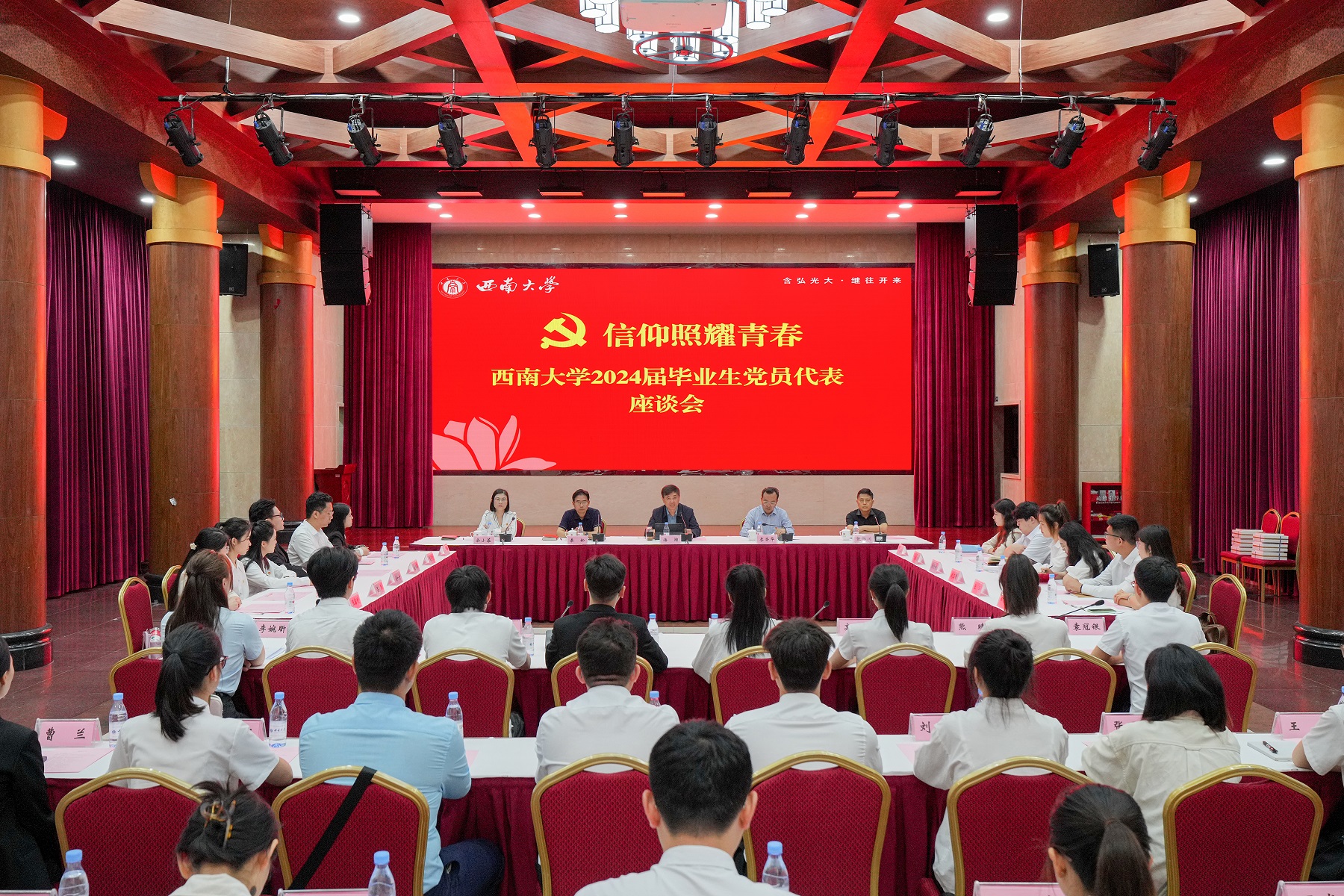 会上,来自数学与统计学院党委、人工智能学院党委、农学与生物科技学院党委、动物科学技术学院党委、资源环境学院党委、教育学部党委等8个单位的本科生、硕士研究生、博士研究生毕业生党员代表分别作交流发言,讲述了各自在学校的奋斗成长经历,表达了对党组织和学校悉心培养的感激之情,表示将会秉承“含弘光大,继往开来”的校训,发扬“特立西南,学行天下”的大学精神,将爱党、爱国、爱校之情转化为强国之志、报国之行,以实际行动践行新时代青年党员的责任与担当。