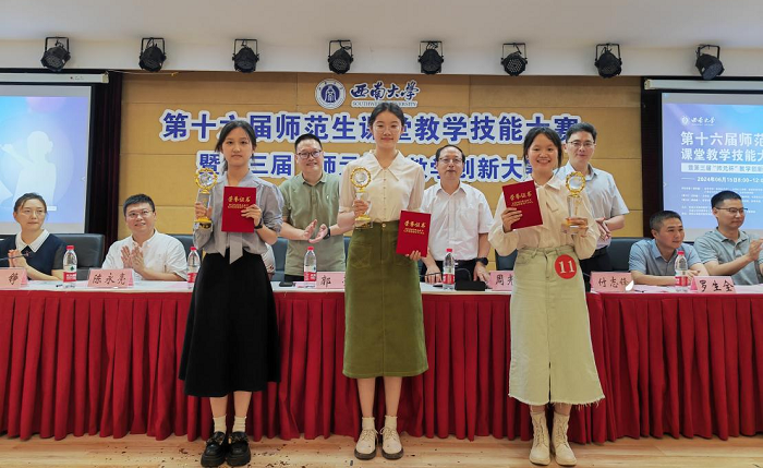 副校长周光明出席大赛颁奖仪式并作总结讲话。他指出,举办师范生课堂教学技能大赛、教学创新大赛,对持续推进学校师范生培养质量工作意义重大、影响深远。他对师范生们提出三点希望:一是希望同学们坚定教育初心,树立教育报国的理想信念;二是希望同学们认真实践,切实增强教书育人本领;三是希望同学们持之以恒,养成行为世范的综合素养。