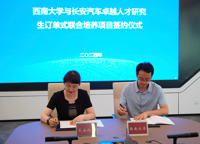 7月3日,学校与重庆长安汽车股份有限公司成功举行订单式联合培养研究生合作协议签约仪式,正式启动校企产学研用一体化培养专业学位研究生项目。签约仪式在长安汽车全球研发中心举行。研究生院院长邱江和长安汽车人力资源部总经理、党委组织部部长赖薪郦代表双方签署协议。
