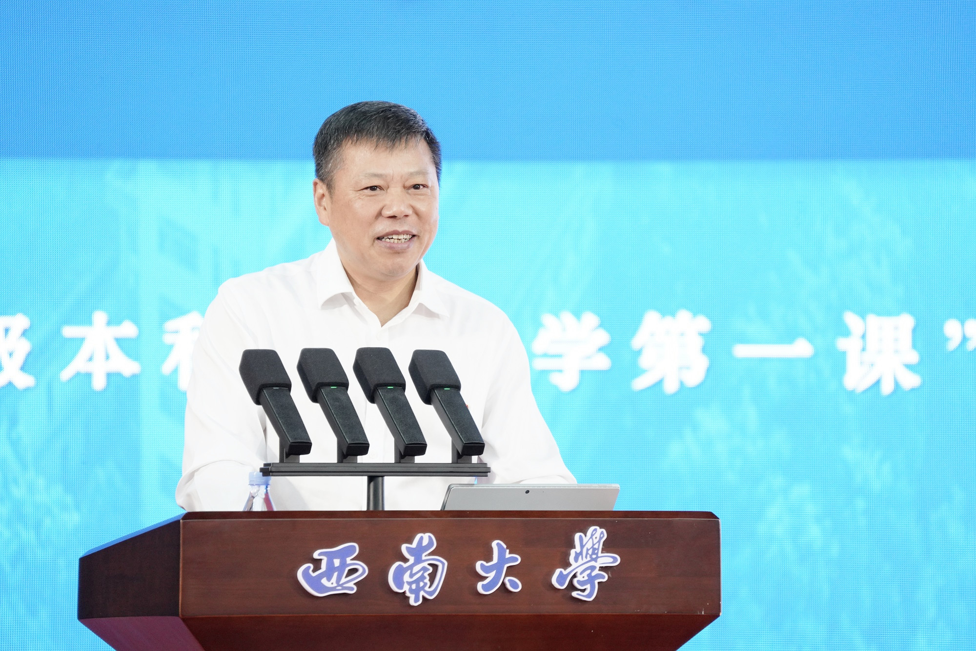 典礼结束后,张卫国以《让跃动的青春绽放绚丽之花》为题,聚焦“特立西南、学行天下”的大学精神,围绕“渊源”“蕴意”“践行”三个方面,为同学们讲述了“开学第一课”。