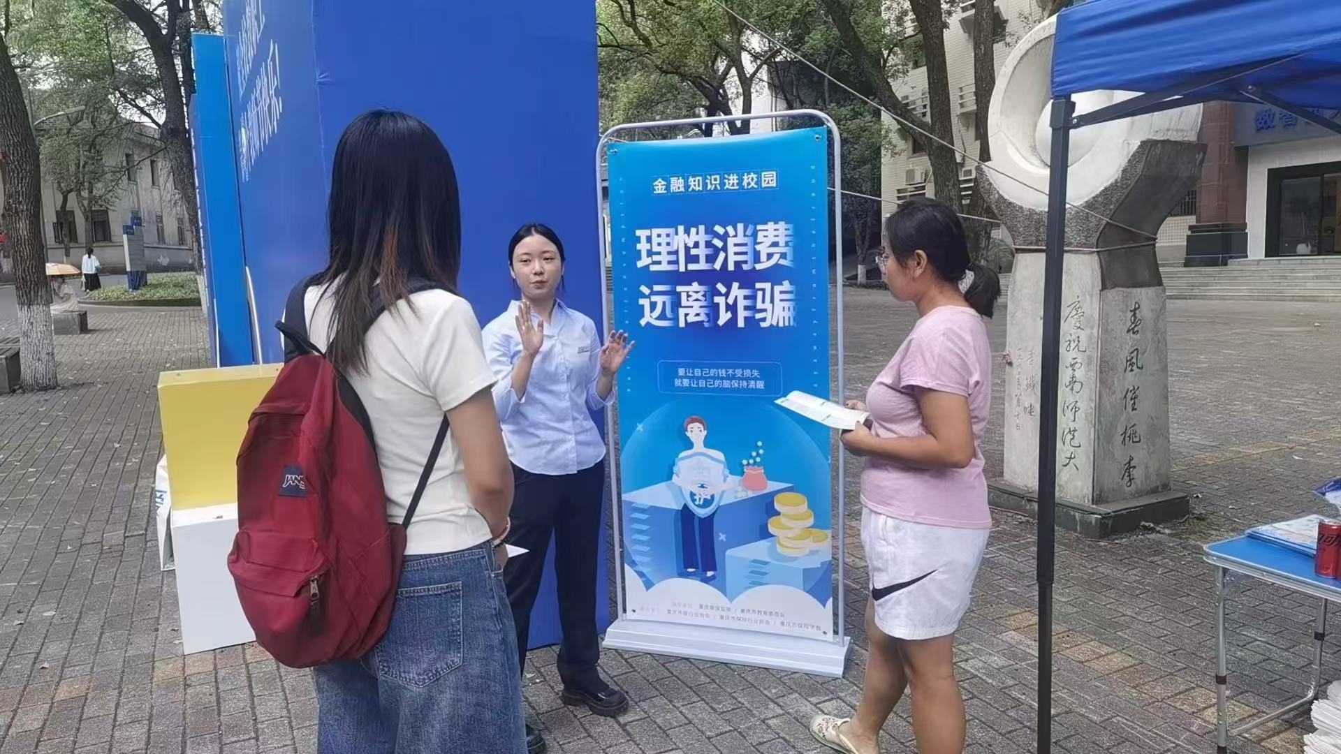 为提高学校师生反诈防非意识与能力,切实保障校园安全,9月20日,学校与中国工商银行重庆北碚支行联合开展了开学季校园反诈防非宣教活动。