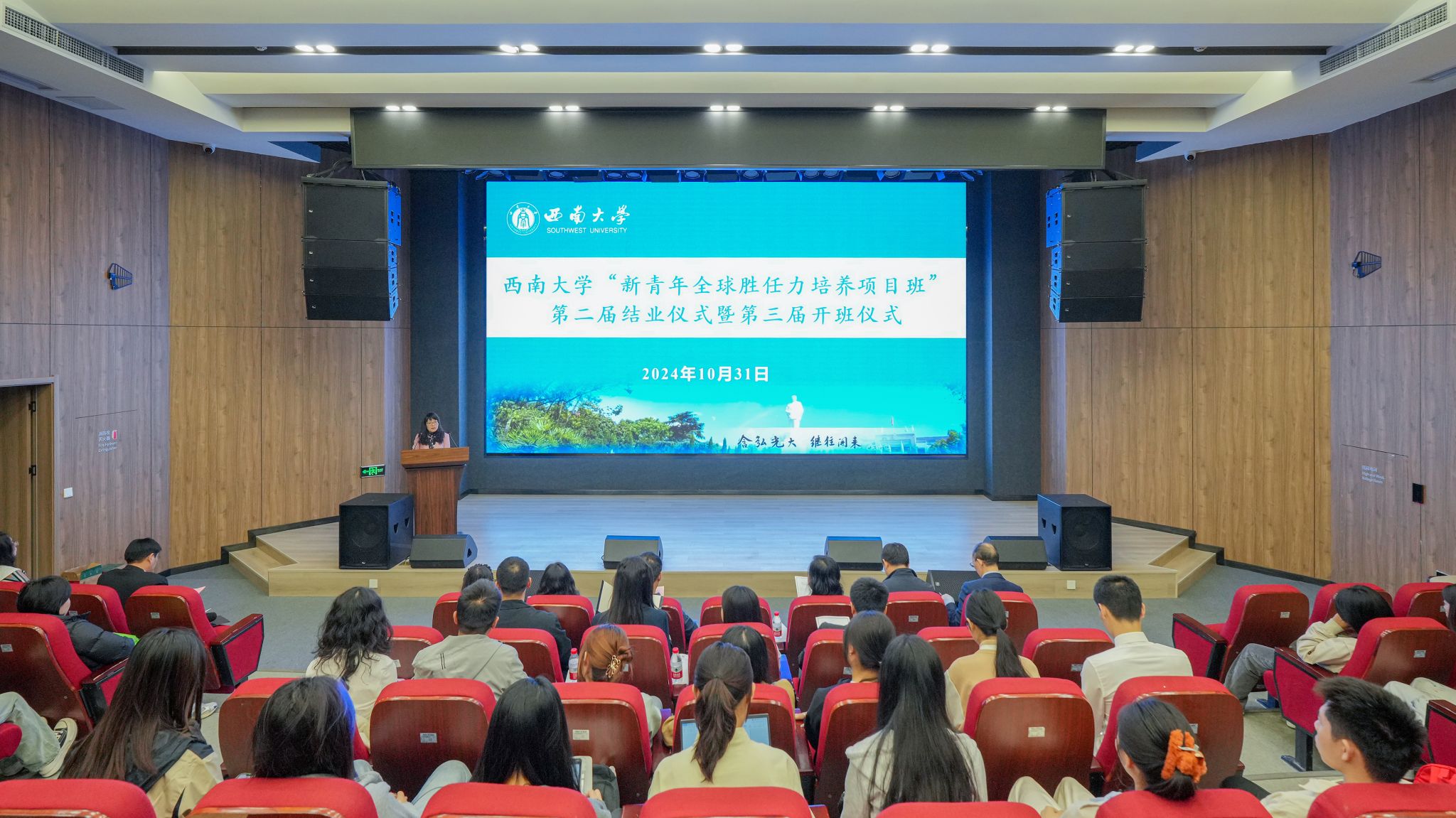 10月31日上午,金年会jinnianhuicom“新青年全球胜任力培养项目班”(以下简称“新青年班”)第二届结业仪式暨第三届开班仪式在中希文明互鉴中心报告厅举行,副校长赵玉芳出席仪式。国际合作与交流处、党委教师工作部、教务处、党委研究生工作部、党委学生工作部、团委、国家治理学院等有关单位负责人和教师代表,以及第二届、第三届“新青年班”全体学员参加仪式。仪式由国家治理学院副院长、金年会jinnianhuicom全球胜任力研修中心执行主任郭美云主持。