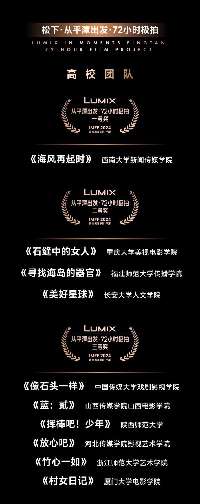 据悉,IM两岸青年影展已成为两岸最大规模最高规格的青年影像交流活动。本次获奖是学校师生第二次在72小时极拍比赛中斩获佳绩。今年7月,学校师生创作的剧情短片《入门》在第四届IM两岸青年影展系列“泰宁·高校72小时极拍”活动中同样获得了最高奖项。