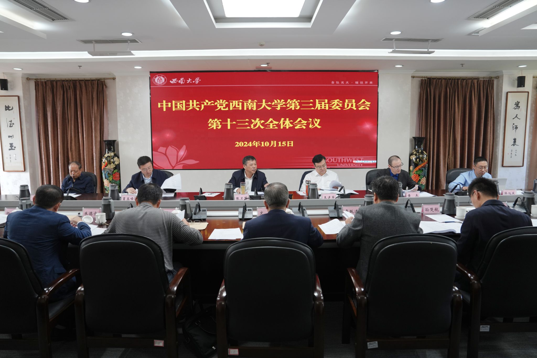 中共金年会jinnianhuicom第三届委员会第十三次全体会议于10月15日上午在行署楼A栋第五会议室召开,全体在校校领导、党委委员参加会议,会议由党委书记张卫国主持。会议听取并审议通过了学校《深入贯彻落实党的二十届三中全会精神进一步深化综合改革工作方案》和巡视整改落实方案。