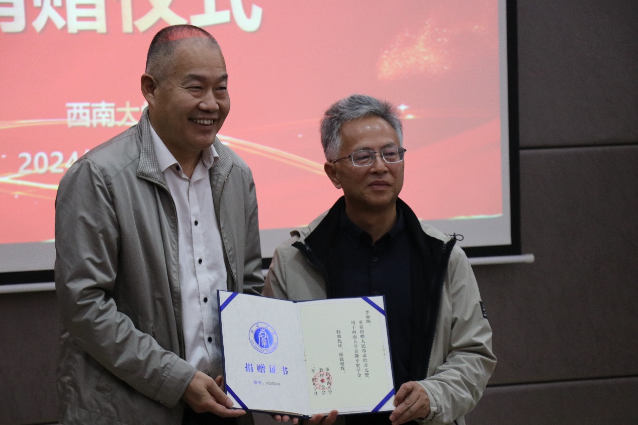 仪式上,李加纳教授向袁隆平奖学金捐赠20万元 ,以支持和激励农业科学领域的优秀学生,希望通过奖学金让广大青年学子牢记袁隆平院士潜心科研的精神,坚定不移传承和发扬袁隆平精神。