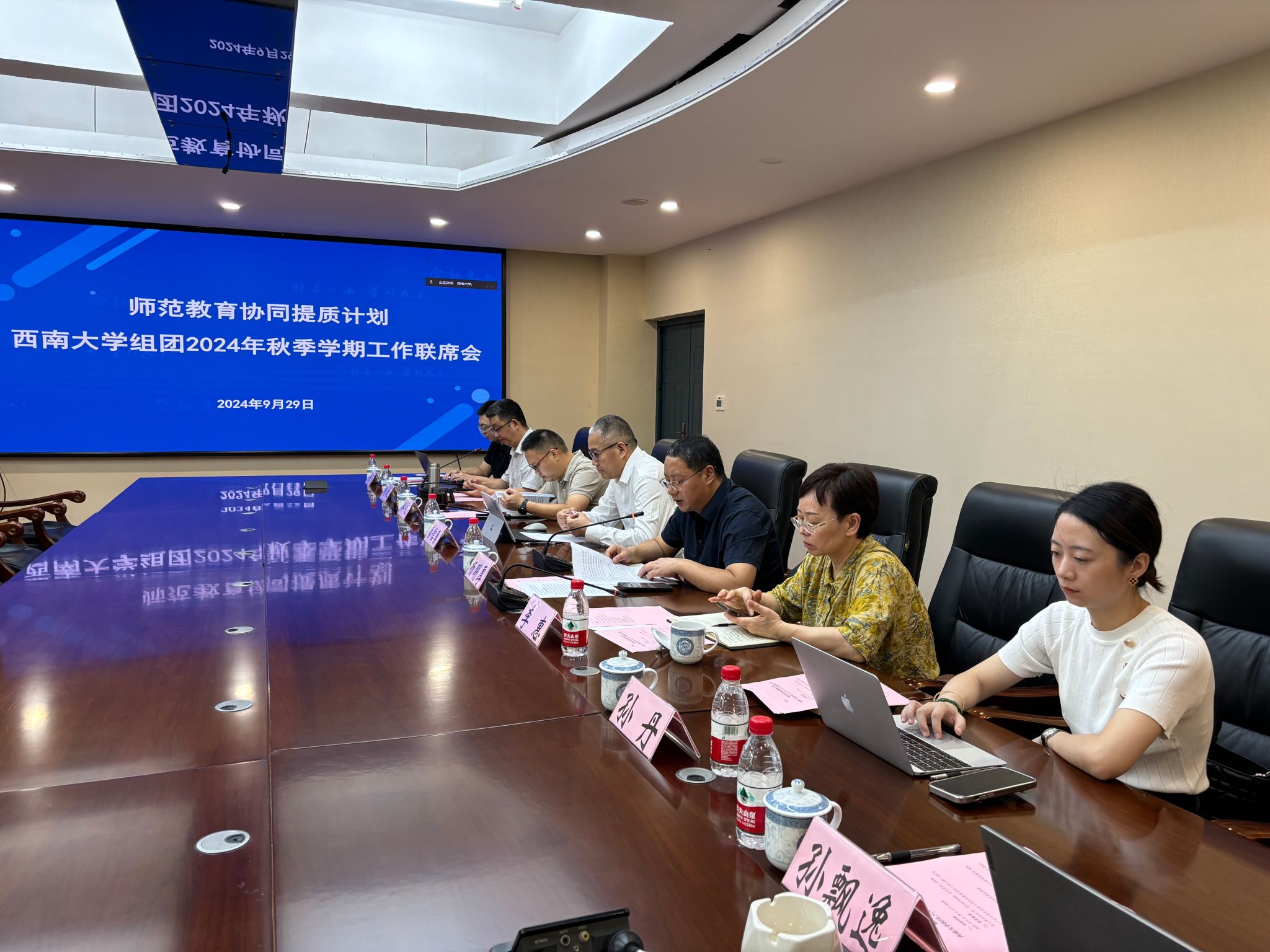 2024年9月29日上午,师范教育协同提质计划金年会jinnianhuicom组团2024年秋季学期工作联席会议在教师教育学院召开。金年会jinnianhuicom、新疆师范大学、山东师范大学、重庆师范大学、和田师范专科学校、河西学院、长江师范学院相关校领导及有关职能部门负责人出席会议。会议以线上线下相结合的方式举行。
