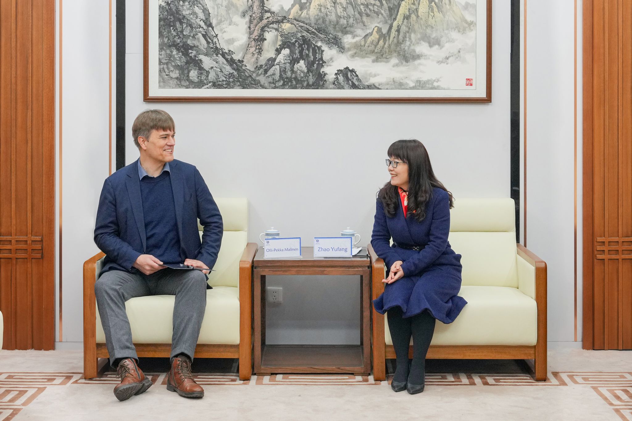 11月26日,副校长赵玉芳会见中芬联合学习创新研究院芬方理事会成员奥利-佩卡·马利宁(Olli-Pekka Malinen)、图娅·图鲁宁(Tuijia Turunen)等一行,国际合作与交流处、教师教育学院相关负责人参加会见。