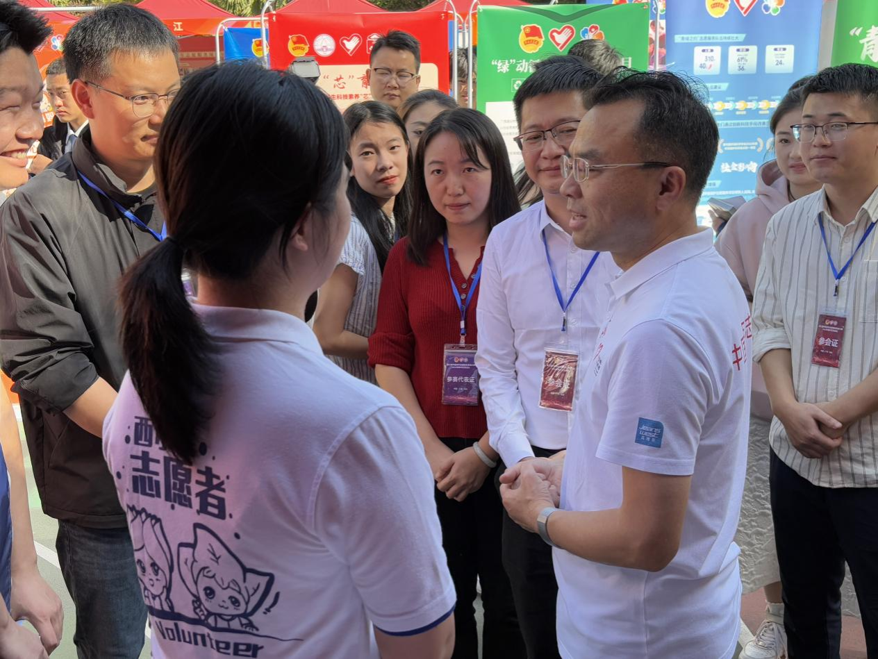 在现场展示环节,共青团中央青年志愿者行动指导中心党委书记张朝晖与学校“西小兰”青年志愿者亲切交谈,并对学校志愿服务工作表示充分肯定。他鼓励学校青年志愿者持续深入学习贯彻习近平总书记关于青年工作的重要思想,丰富拓展青年志愿者行动的时代内涵,努力在中国特色志愿服务中发挥更大的作用。