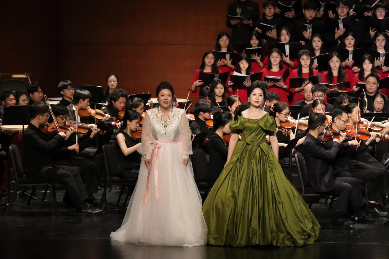 4月17日晚,重庆大剧院中剧场座无虚席,一场震撼人心的音乐盛宴拉开了2025重庆大剧院首届大学生艺术节的序幕。学校音乐学院交响乐团(重庆青年交响乐团)与合唱团携手演绎的“赓续血脉·共谱华章”《黄河》大型交响合唱音乐会,以激昂的旋律和深情的歌声,带领现场观众回溯峥嵘岁月,向中华儿女的坚韧精神致敬。