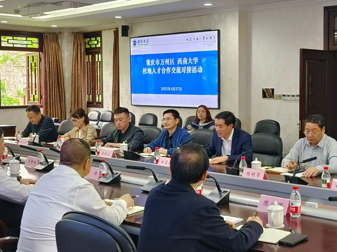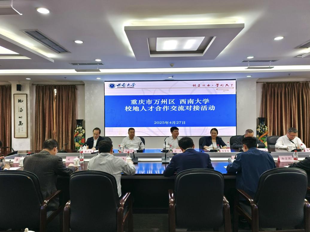 4月27日,重庆市万州区委常委、组织部部长彭锋带队来校开展校地人才合作交流对接活动。校党委常委、副校长白显良,党委组织部、科学技术发展研究院、社会服务处、本科生院、研究生院、学生职业发展与就业服务中心、继续教育学院等相关负责人参加活动。