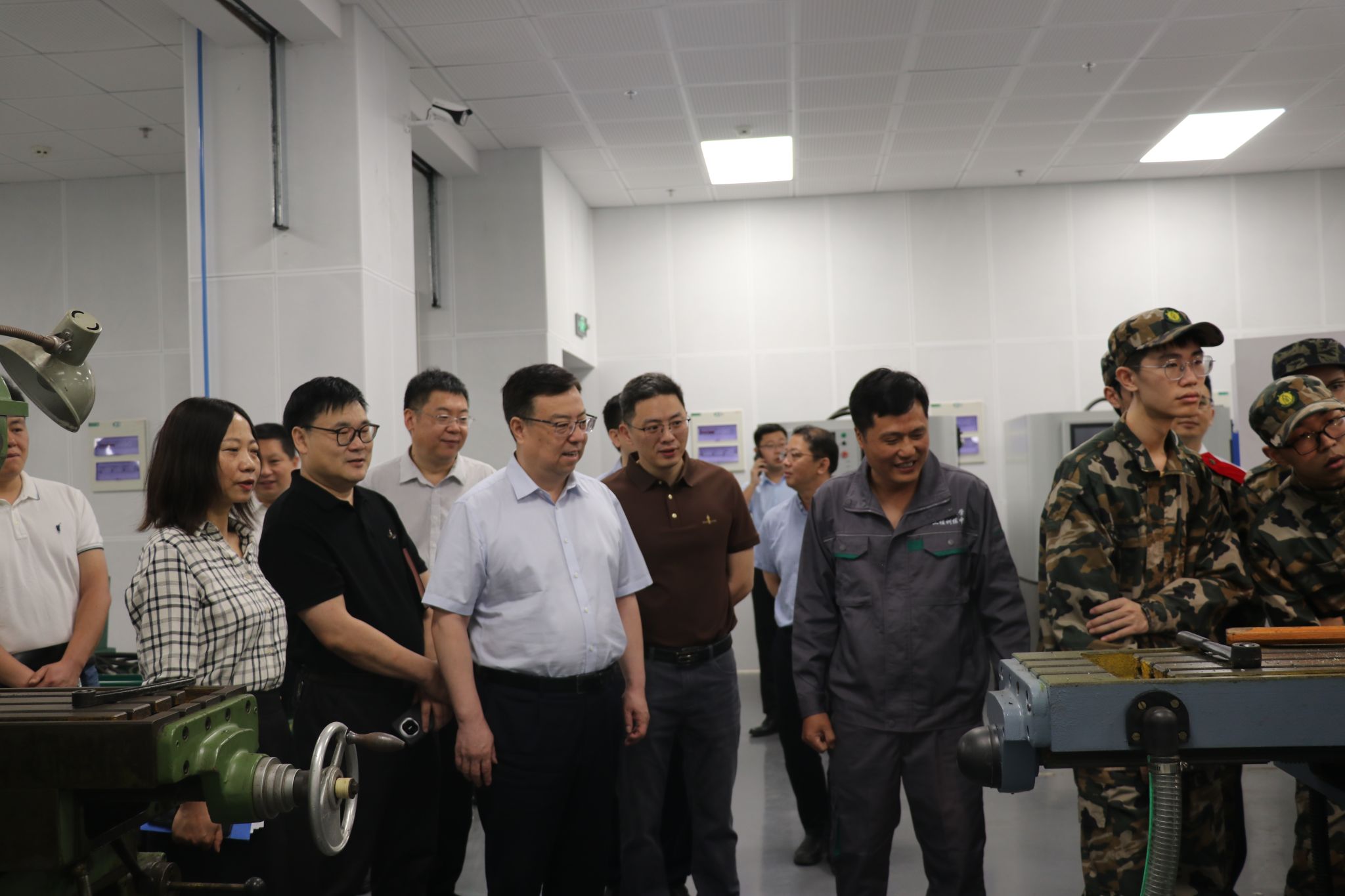 会前,与会人员前往工程训练中心进行实地考察,在各功能区域查看设备配置、场地建设和教学环境等情况,了解中心软硬件设施建设与运行状态,与正在进行实训课程的学生进行交谈,听取学生对工程训练课程的反馈,充分掌握教学实际情况。
