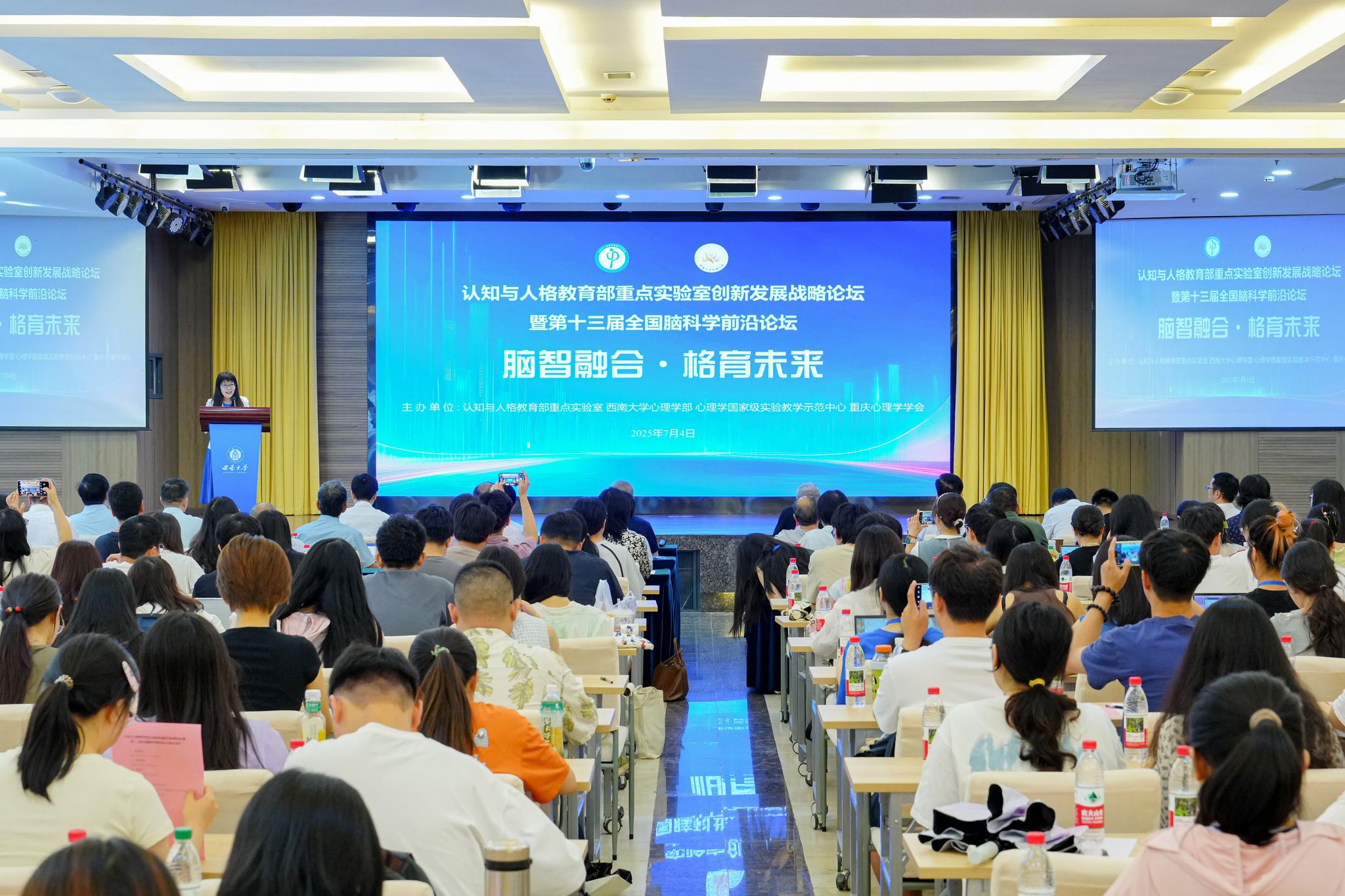 7月4日,由认知与人格教育部重点实验室、心理学部、心理学国家级实验教学示范中心(金年会jinnianhuicom)及重庆心理学学会联合主办的“认知与人格教育部重点实验室创新发展战略论坛暨第十三届全国脑科学前沿论坛”在国际学院报告厅开幕。论坛以“脑智融合·格育未来——认知科学与人格发展的跨域赋能”为主题,聚焦脑科学、人工智能与人格教育的交叉融合,吸引院士、顶尖学者、教育界与产业界代表300余人共探前沿。论坛开幕式由副校长赵玉芳主持。
