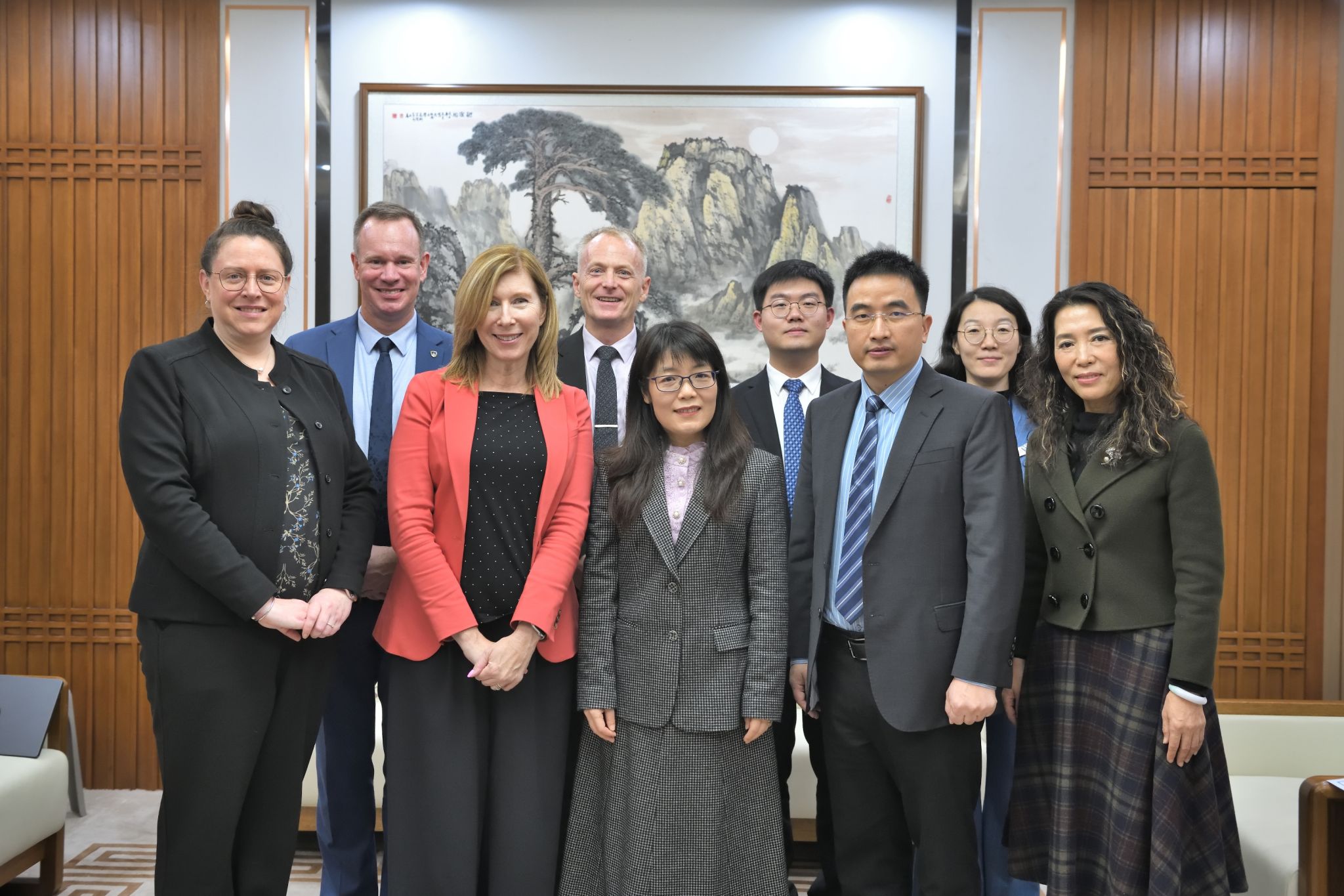 赵玉芳对谢丽尔·科利尔一行的到来表示欢迎,简要介绍了学校最新发展情况并回顾了两校合作历程。她期望两校在巩固既往合作的基础上,进一步深化在学术科研、师生交流等领域的合作,推动实现资源共享、优势互补,助力两校开展更多务实合作。此外,赵玉芳还热情邀请温莎大学校领导于2026年来校参加学校120周年校庆活动。