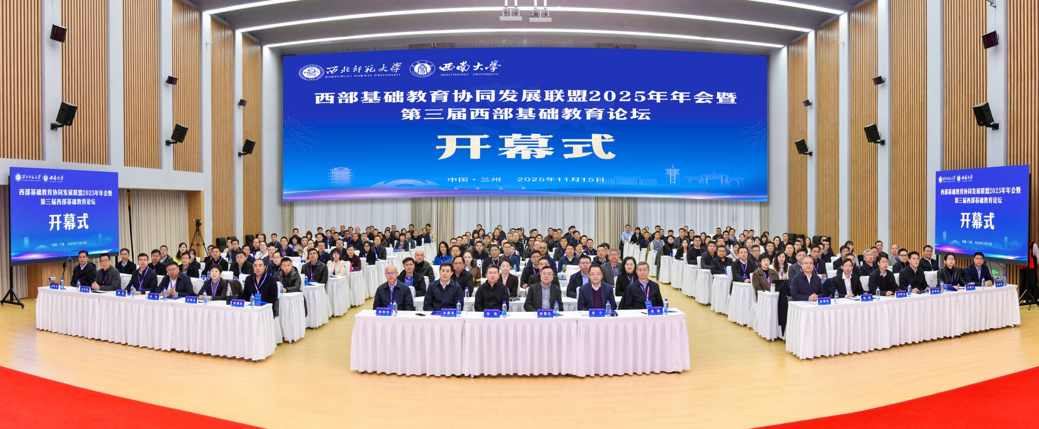 11月15日,由学校牵头发起的西部基础教育协同发展联盟2025年年会暨第三届西部基础教育论坛在西北师范大学成功举办。西北师范大学党委书记贾宁,甘肃省教育厅副厅长党勤,学校副校长白显良,重庆师范大学副校长杨如安,重庆陆海传媒副总经理、课堂内外董事长简渠出席开幕式并致辞。来自西部12省份的18所师范院校、部分地州市教育主管部门、110所中小学的280余位领导、专家学者与一线教育工作者参会。西北师范大学副校长张明军主持开幕式。