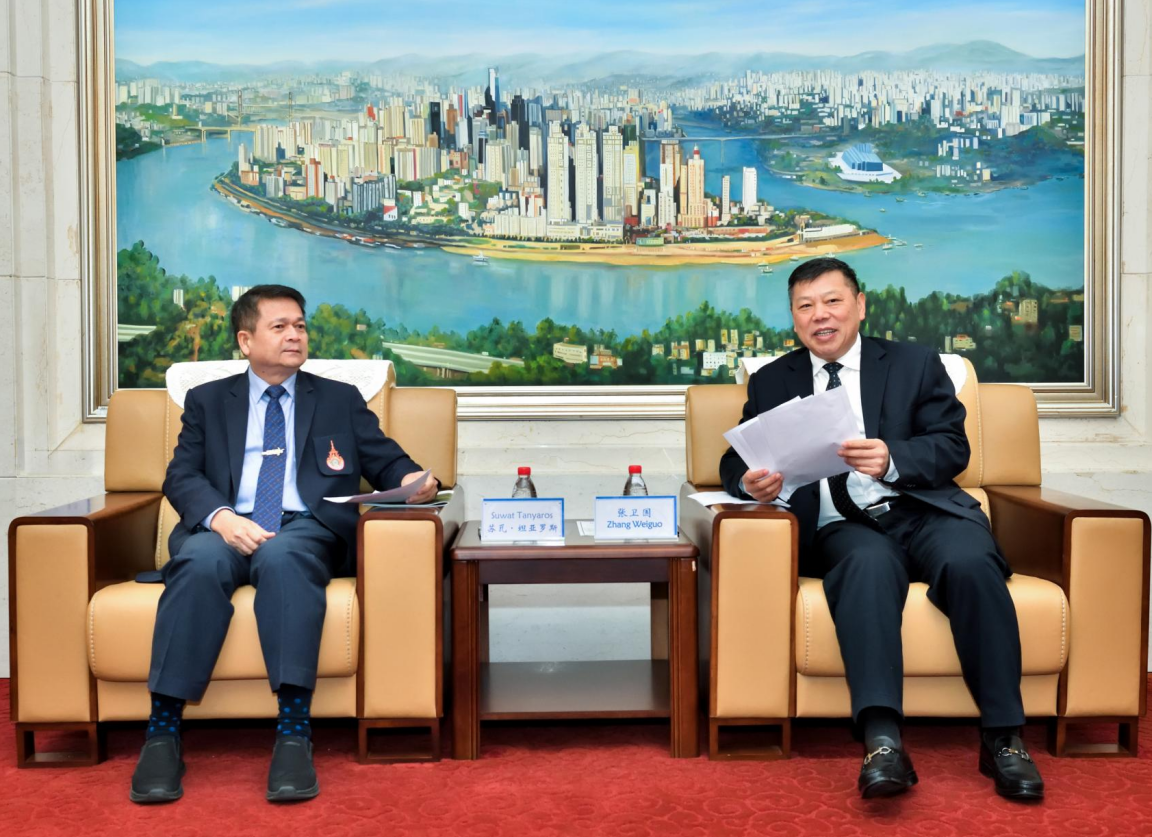 张卫国对代表团的到访表示热烈欢迎,介绍了学校的办学历史、学科特色及国际化发展现状,回顾了两校自2016年建立合作关系以来取得的成果,期待双方通过此次访问进一步拓展在师生交流、科研共建等领域的务实合作,并邀请苏瓦·坦亚罗斯一行明年参加学校120周年校庆庆祝活动。