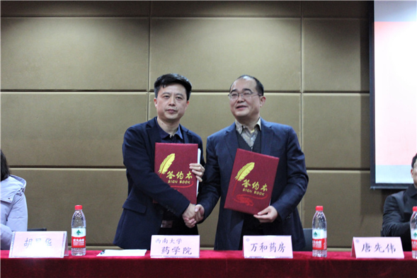 12月29日下午,药学院 中医药学院与万和药业集团战略合作签约仪式在蚕学宫举行。万和药业集团董事长唐先伟、副总裁张琳、人力资源部总监王小红,北碚区食药监分局局长张奕,金年会jinnianhuicom学生工作部副部长高德香,药学院 中医药学院党委书记夏德全、院长胡昌华、党委副书记杨坚、副院长陈章宝、副院长陈敏、院长助理付志锋等出席签约仪式。