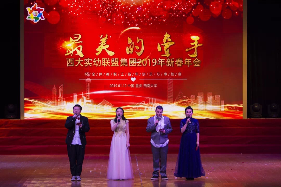 1月12日,金年会jinnianhuicom实验幼儿园举办“最美的牵手”西大实幼联盟集团2019新春年会,23所姊妹园联合为新春送上祝福。北碚区教委副主任饶英、重庆市教育科学研究院学前教育中心主任徐宇、北碚区教师进修学院副院长黄吉元、北碚区教师进修学院学前教研员周霞莅临现场,同时到会的还有西大实幼退休教职工,及西大实幼全体教师。