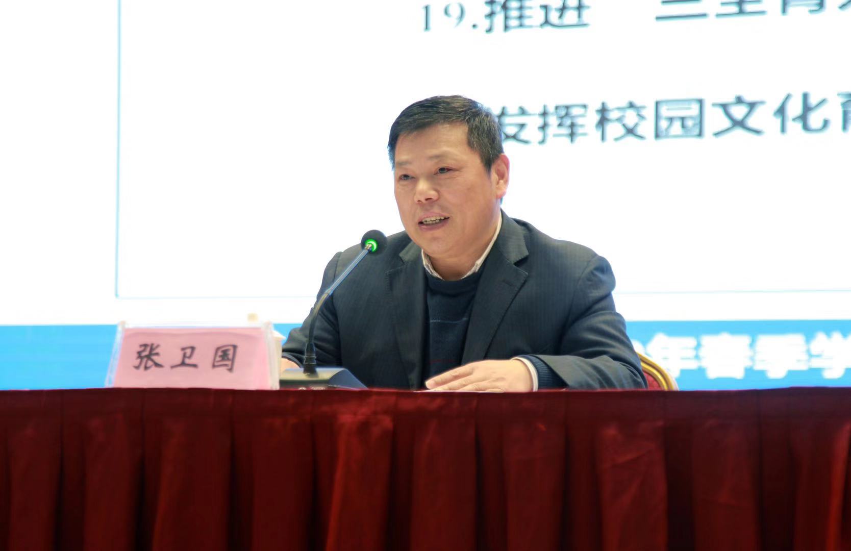 校长、党委副书记张卫国首先明确了2019年学校工作的总体要求是:以习近平新时代中国特色社会主义思想为指导,深入贯彻党的十九大精神,全面落实全国教育大会精神、第26次全国高校党的建设工作会议精神,坚持党对学校工作的全面领导,坚持党委领导下的校长负责制,坚持以狠抓落实为总抓手,落实基层党建工作基本要求,落实内涵式发展重点举措,落实立德树人根本任务,推出一批“亮点项目”和“精品工程”,着力书写学校改革发展“奋进之笔”,向全校师生交出一份“得意之作”,以优异成绩庆祝中华人民共和国成立70周年。