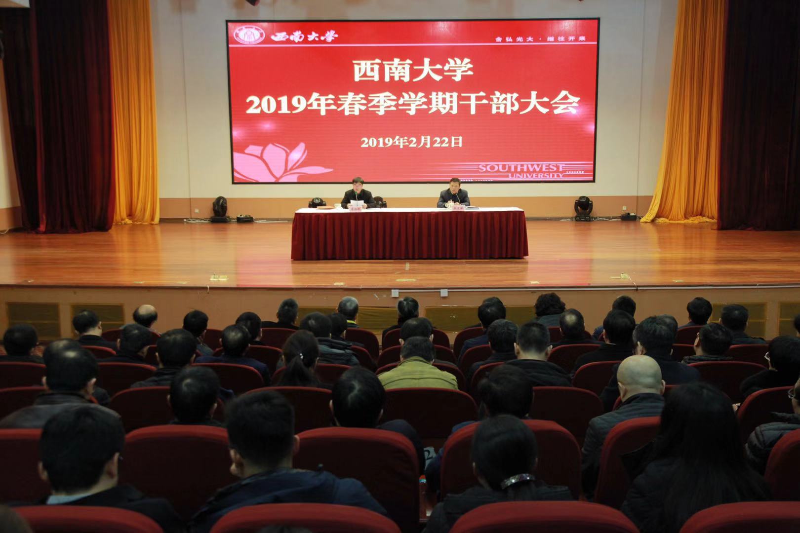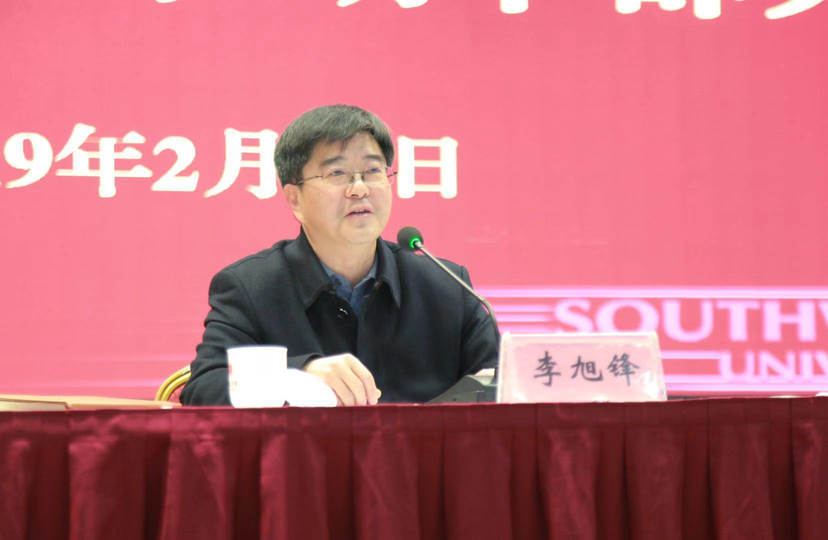 2月22日,学校召开新学期干部大会,部署2019年学校主要工作。党委书记李旭锋主持会议。