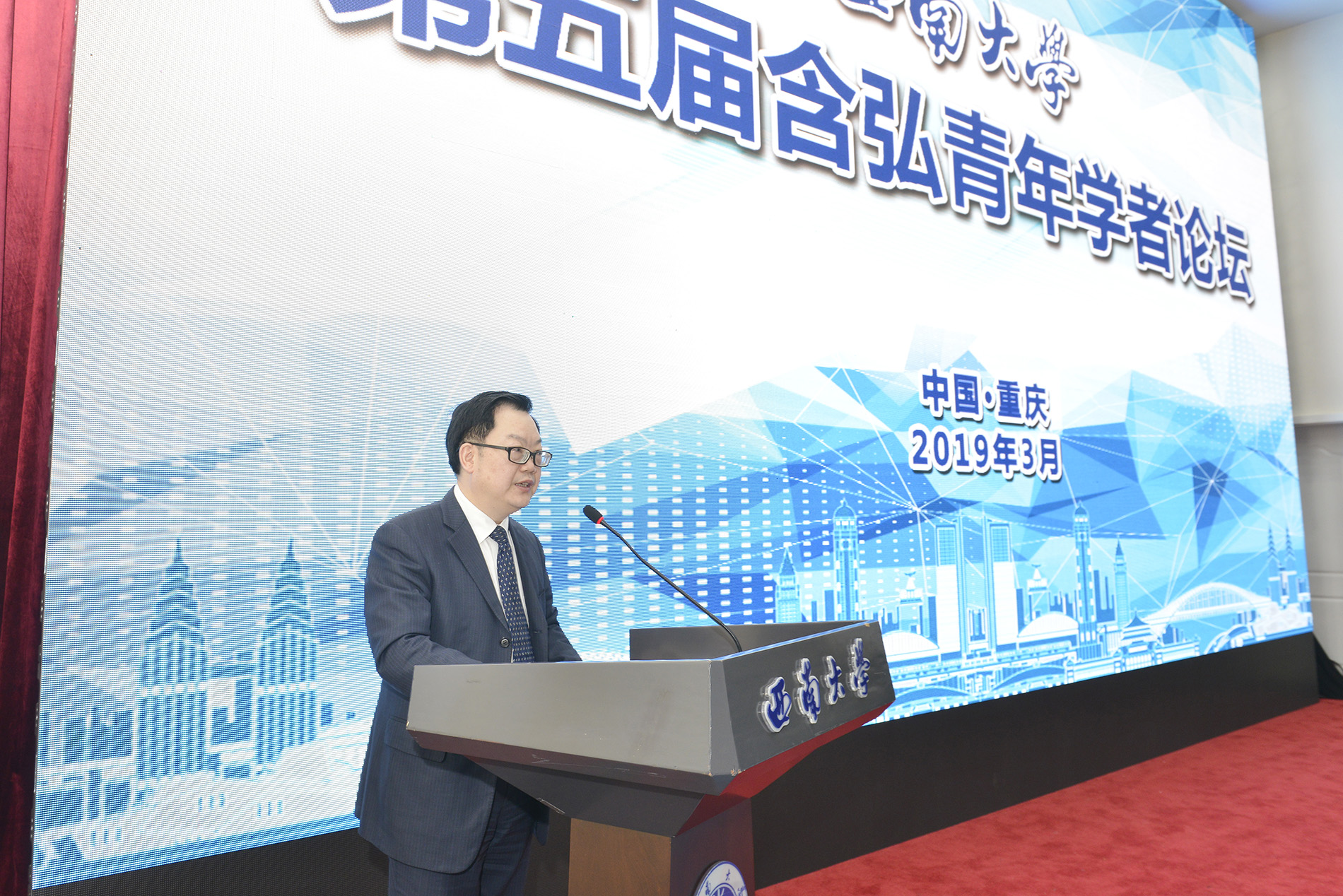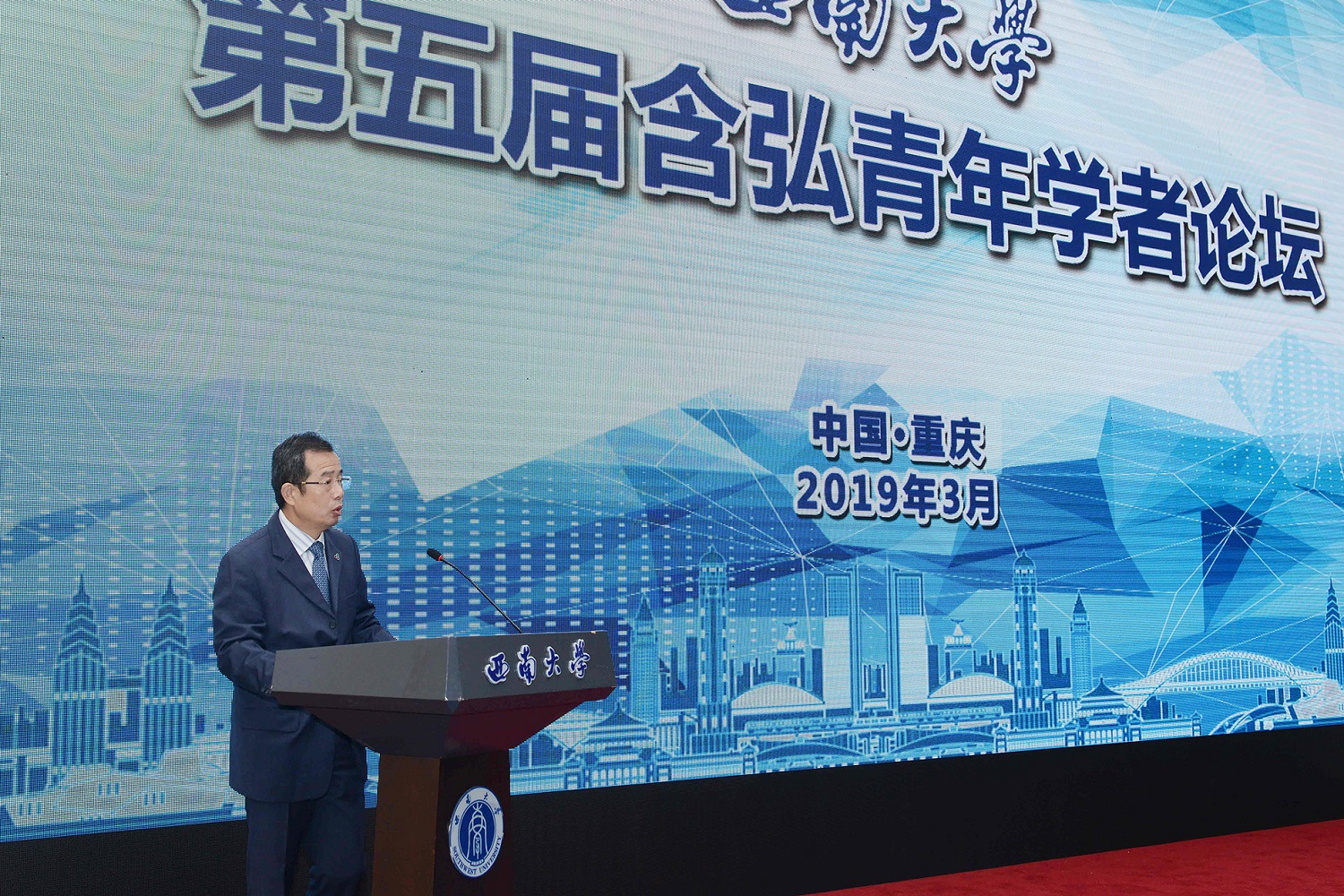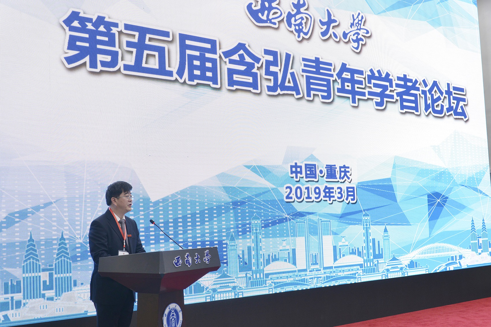 3月25日,学校第五届含弘青年学者论坛开幕。中共重庆市委组织部副部长康骞、中共重庆市北碚区委副书记高洪波,中国前驻卢旺达、摩洛哥王国大使孙树忠,学校党委书记李旭锋、副校长陈时见,重庆市、北碚区相关职能部门负责人,学校专家教授,70余名海内外青年才俊出席论坛开幕式。论坛开幕式由陈时见副校长主持。