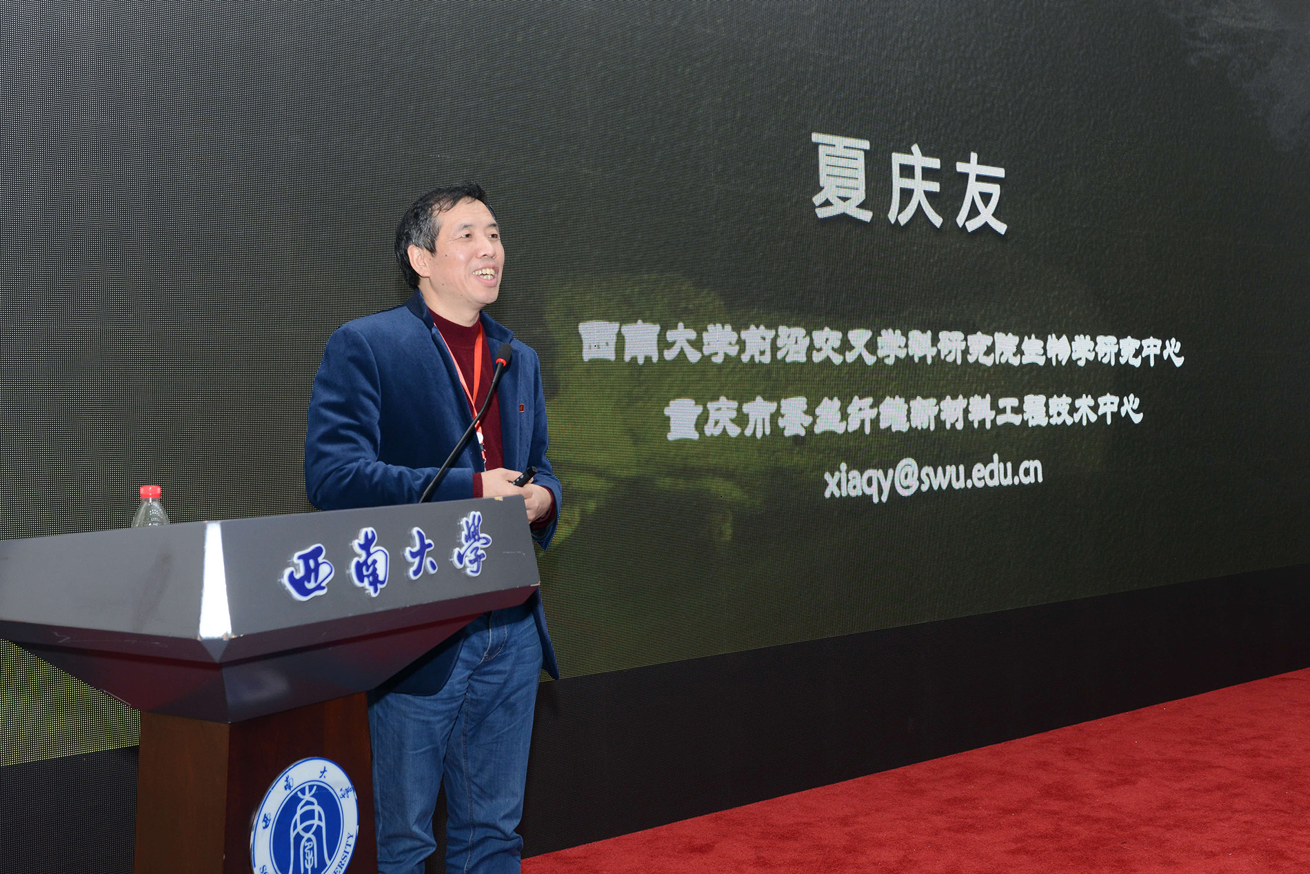 前沿交叉研究院生物学研究中心夏庆友教授作题为“家蚕:科学、产业与文化——回国20年工作介绍”主题报告。夏教授讲述了自己投身科研的经历,以及在家蚕基因组、蚕丝纤维的科研和产业化方面取得的成绩,鼓励青年学者加入西大,成就事业。